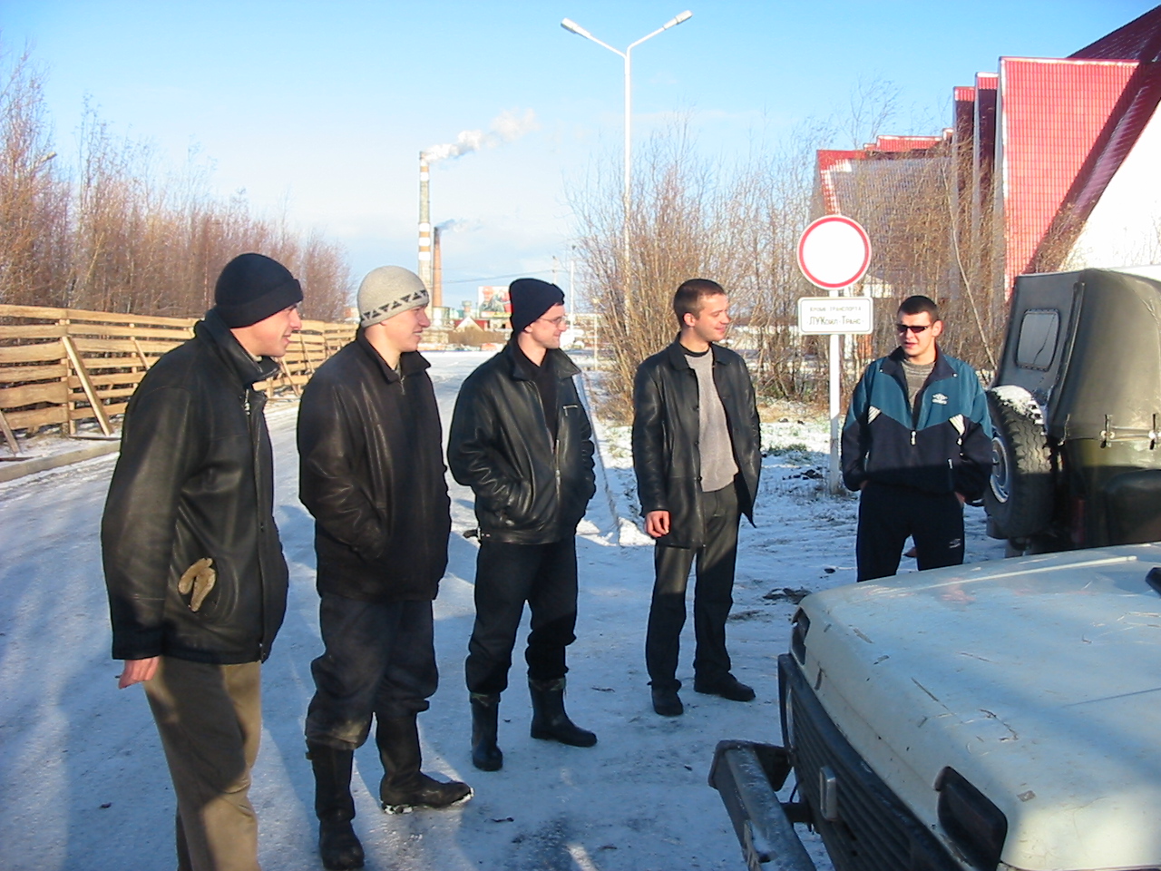 Через несколько минут я уже выезжал со стоянки по направлению к дому Лёхи, идейного и технического вдохновителя нашей небольшой авантюры. Забрав Леху, а вместе с ним и небольшое количество шанцевого инструмента, дабы не оказаться безоружным перед лицом грозной действительности, мы заехали за Деном, и неспеша направились к месту общего сбора на автовокзале. Там естественно никого ещё не было, и мы вдвоём с Лёхой отправились на “заработки”, сбивать необходимую сумму для заправки нашего гостеприимного танчика. Пока мы правдами и неправдами добыли деньги, к месту сбора прикатил Колян на служебной “ниве”. Для незнающих поясню Колян относить к тому роду людей которые могут загубить самое смелое начинание в корне, если им дать на это волю. Он стал стращать нас что дороги там нет, что мы пропадём без вести и вообще лучше сидеть дома перед телевизором и бухать водку. На что мы ему ответили, что нам без разницы, есть там дорога или нет, и что если её там нет, то мы её там сделаем. Чтобы не терять зря времени я оставил народ дожидаться остальных, а сам поехал на заправку. На заправке несмотря на ранний час оказалась довольно большая очередь. Все видимо решили провести выходной день на природе, но благодаря заторможенной реакции водителей, которые почему-то подъезжают только к ближним колонкам, напрочь игнорируя более дальние. Вобщем используя этот баг в настройках усинских водителей, я умудрился пролезть мимо всей очереди к пустующей дальней колонке. И уже через несколько минут, на всех парах сматывался оттуда заправленный и провожаемый изумлёнными взглядами водителей. При подъезде к месту сбора, обнаружил кроме Коляновской нивы существенную прибавку, Ниссан и Уазик. Водители и штурманы стояли рядом оживлённо переговариваясь с моими пассажирами. Приветствия, ожидание, телефонные звонки. На это было убито ещё около получаса и вот все решились. СТАРТ!