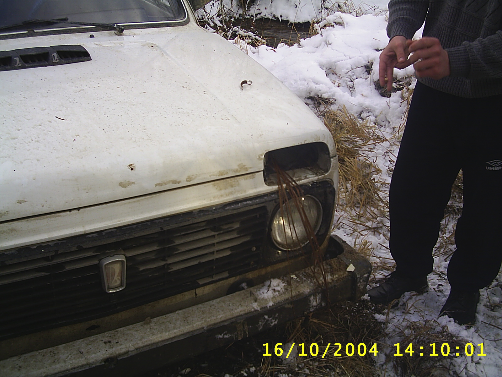 Ниссан пообещал догнать нас по дороге. А мы потихоньку выдвинулись в сторону Пармы. Конечно колона из одной нивы и уазика не могла похвастать тем что являла собой прямо таки захватывающее зрелище, но настроение было на подъеме, солнце радовало своими лучами и общее настроение экипажа было преотличнейшим! Дорога покрытая тонкой корочкой льда и летняя резина, своим дуэтом сдерживали желание утопить педаль газа в пол, дабы наше путешествие не окончилось едва начавшись. Несмотря на это асфальтовый участок трассы пролетел незаметно, и “Ниссан” догнал нас только возле первого препятствия пополнив нашу колону. Препятствием был ручей, который мирно тёк через дорогу и не подозревал о наших намерениях. Алексей облачившись в болотные сапоги, начал проверять путь, на предмет наличия брода. После того как брод был проверен. мы по одному форсировали водную преграду. Всё прошло на удивление легко и машины под надзором объективов видеокамер и фотоаппаратов, достойно справились с первым препятствием. Далее последовал “звонок другу”, благодаря которому выяснилось, что Илья догонял нас на ещё одной “ниве”, договорившись ждать его возле второго ручья, мы расселись по машинам и тронулись в путь по заснеженной трассе заброшенной уже несколько лет назад. Наше передвижение облегчало то, что несколькими часами ранее, перед нами проехала какая то большая машина, которая во первых обозначила путь, а во вторых сломала в многочисленных лужах лёд, благодаря чему мы практически безболезненно продвигались вперёд. Средняя скорость была около 30 километров в час. Вскоре мы доехали и до второго большого ручья. Выпустив вперёд бродо-проверяющий зонд в болотниках и фото-видео операторов, водители подготовились к преодолению очередной преграды. После отмашки давшего добро Алексея, я первым повёл свой танк на глубину, но оказалось что глубины нет абсолютно никакой и вода едва скрывает половину колеса. Тогда я решил более эффектно проехать водное препятствие и включив заднюю скорость вернул авто в исходное положение. После чего провёл разгазовку двигателя и на скорости врубился в воду подняв фонтан брызг, всё бы хорошо, но вода залила двигатель и он начал чихать, после чего благополучно заглох на выезде из ручья. После нескольких попыток он всё же завёлся и я медленно покинул русло ручья выехав на берег. Весь салон машины моментально наполнился паром. Пришлось открыть капот, чтобы машина могла “спустить пар”, пока остальные участники преодолевают ручей.