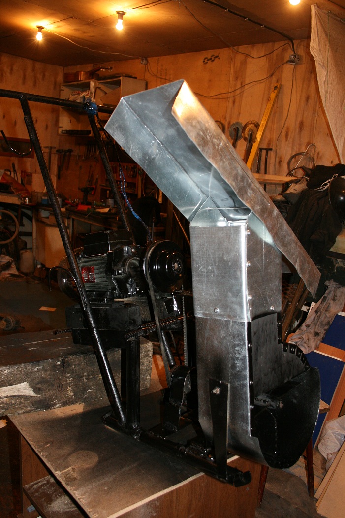 500р движок продается , вроде рабочий. Саня, сколько киловатт и скорость вращения? У кого есть кусок толстой жести, примерно 1,5м х 1,5м? Где взять пластиковую трубу (канализационную) на 150мм и такой же отвод под 135 градусов? В магазинах только "сотку" видел. Нужно выкид переделать на Шрайбомёте. Ну, короче... Шрайбомёт собран до кучи и покрашен! Осталось соорудить заборник-направляющую для снега и переделать выкид. Сегодня вечером, постараюсь провести полевые испытания. -------------------- "...бойтесь времени, время - топор. Ваши души отыщет день судный"