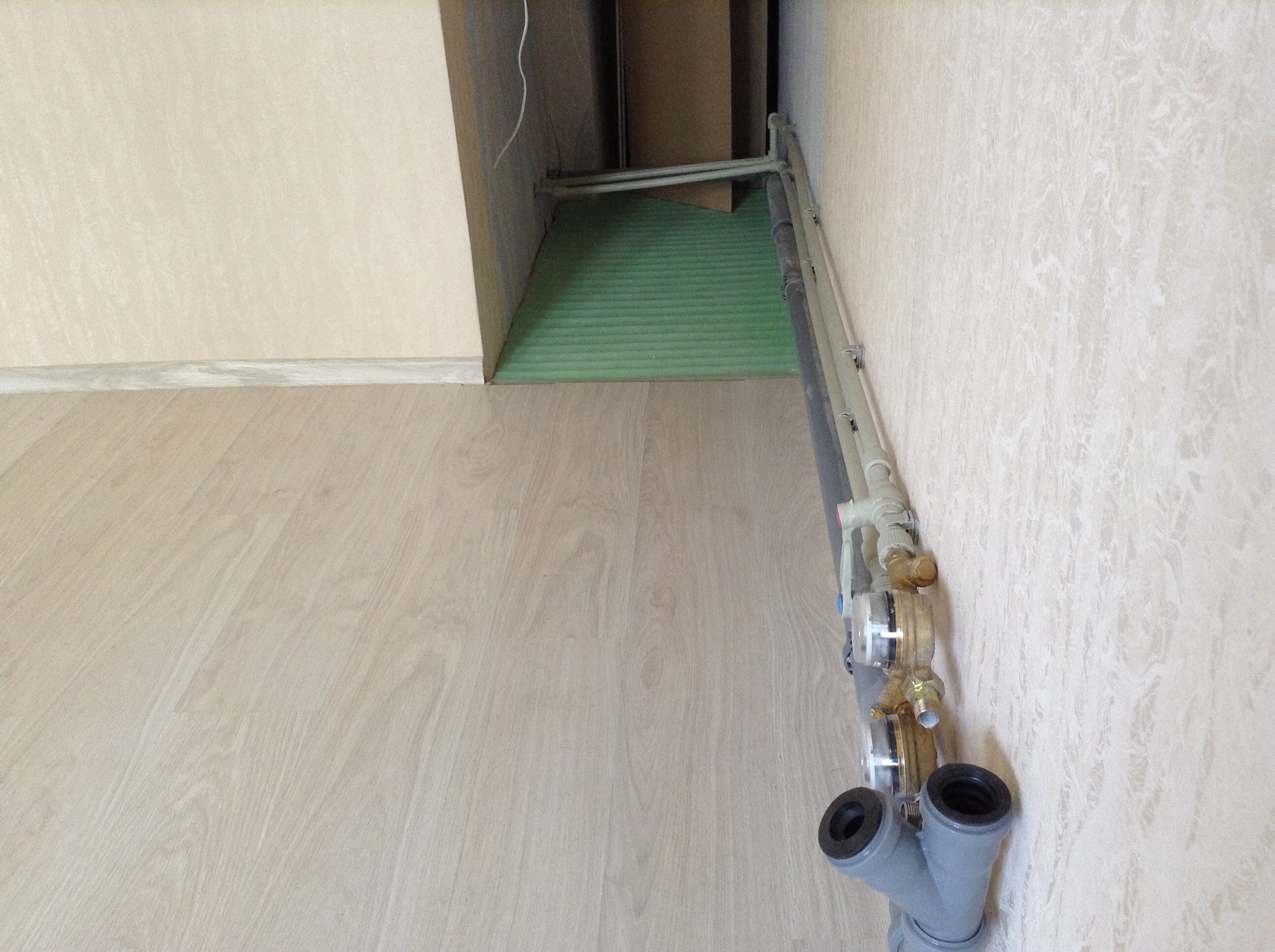 Ниша слева (которая будет закрыта холодильником). Пришлось выводить из нее водопровод под мойку. Ниша справа, в нее будет встроен пенал. -------------------- "Я люблю этот город, но зима здесь слишком длинна" (С)