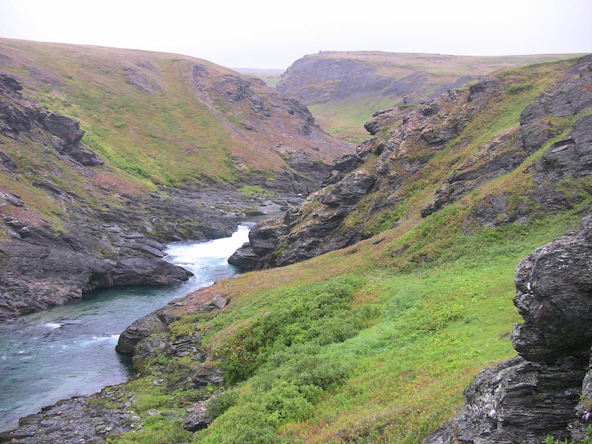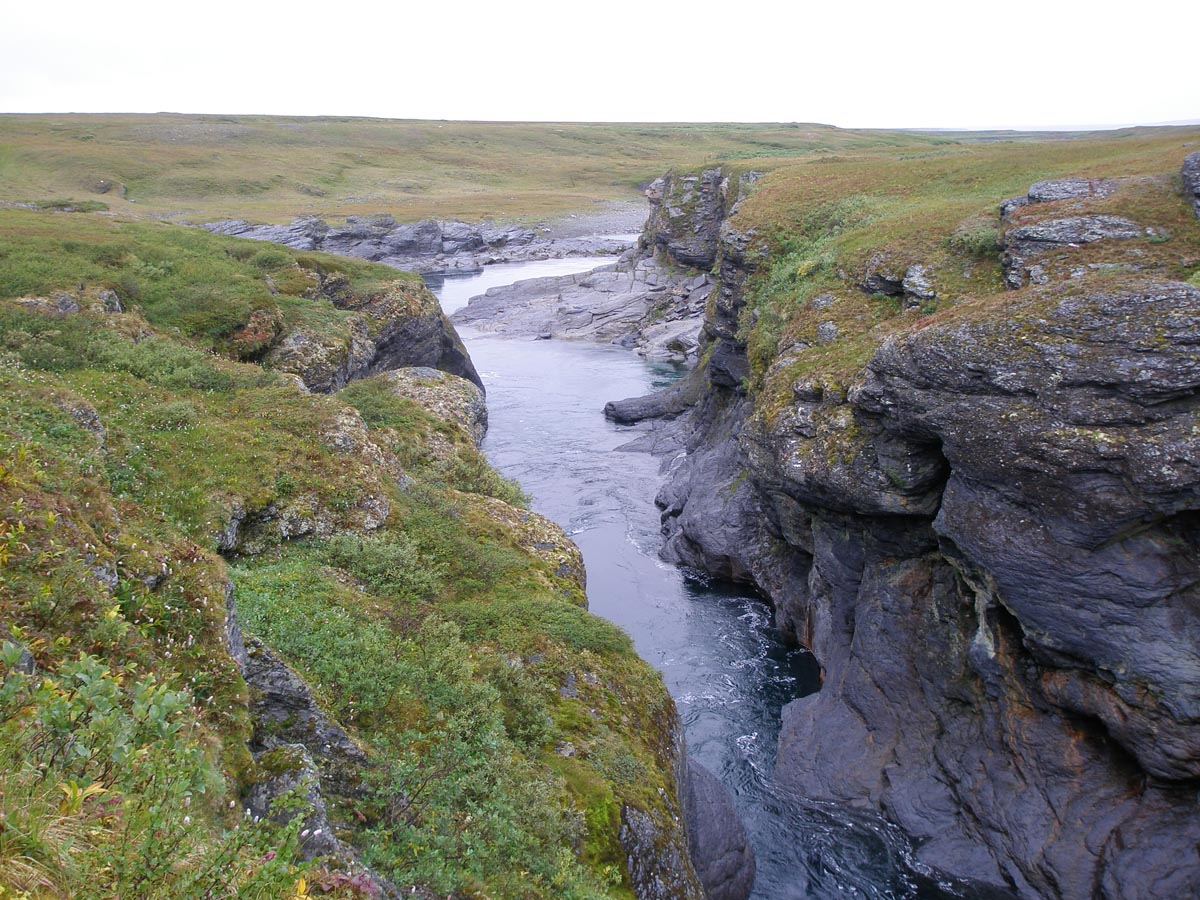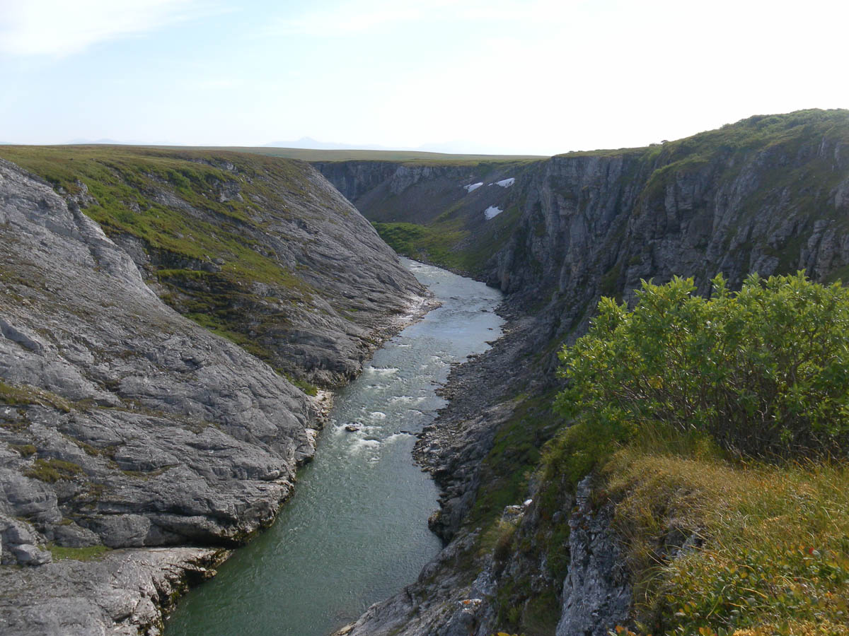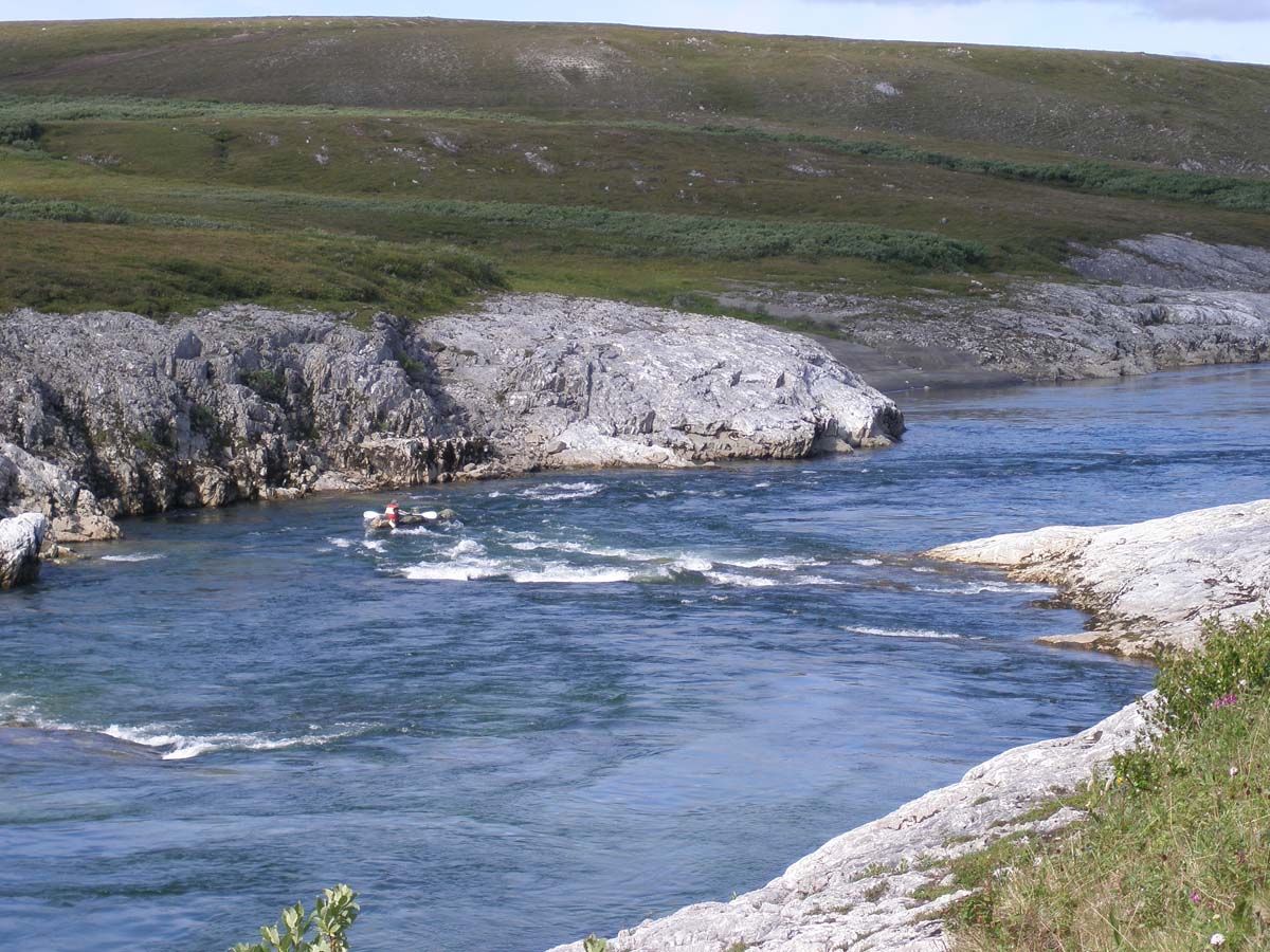 Несмотря на то, что выдвинулись мы практически после обеда удалось пройди до конца светового дня 14 км. Ночи еще более-менее светлые. Течение хорошее. Но прохладно, насекомых мало, рыба не гуляет. В точке ночевки обрыбился и поймал штук с пяток хариусов. Рыбалка закончилась обрывом блесны блюфокса №4 (порвался поводок). Может быть от старости конечно, а может и зацепил таки гольца, который уже подымался с моря вверх по Каре. То что это была рыба, это однозначно, в руках чувствовалось биение через спиннинг. Но, вот достать не удалось. На ужин как говорится поймали. Этот участок Кары - ничего особенного, хорошая быстрая речка. Наличие кустов для костра. Наверное больше всего мне понравилось то, что тундра здесь очень отличается от нашей. Твердая, каменная, ходить одно удовольствие. Все берега в плотно-утоптанных оленьих тропах. Вдоль самой реки идет вездеходная дорога. Катаются тут и гусеничные вездеходы и каракаты на пневмоколёсах и даже квадрациклы. Нет того ощущения болота, как например у нас в районе Харьяги. Иногда возникает ощущение, что ты находишься осенью в Ставропольских холмистых степях.