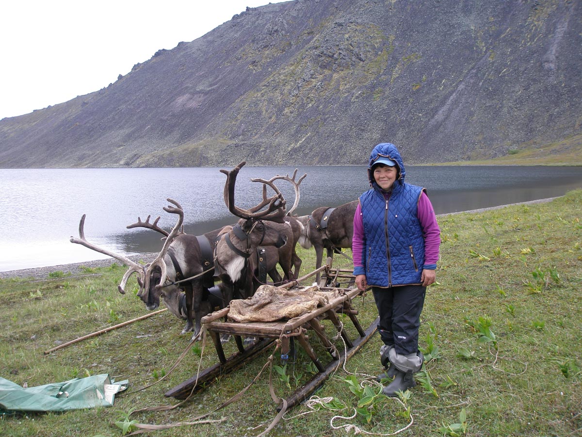 Я вышел раньше Коли и Тани на 1 час вперед с надеждой, что если нет рыбы в основной реке, то возможно она в притоке. Надежда не оправдалась. Далее отворот в левый ручей, который максимально приблизит нас к месту начала волока на озеро Манисейто. Еще из далека увидел то-ли трубы, то-ли мачты на бугре. Ручей мелкий совсем. Ручку на лодке перешил капроном еще на одной из стоянок, поэтому тащил смело, но скрип камней по днищу все же напрягал, только бы не порвать. По ручью прошел совсем чуть-чуть слишком мелко. Подошел к бугру и решил сбегать посмотреть, что там за терем. Поднялся, стоит красивый такой летний домик-сарайка с баней, туалетом, но без единой печки. От сарайки примерно в 1-2 км видно стойбище оленеводов. Мимо по горизонту проскакали 3 упряжки. К стойбищу ведет вездеходная дорога. Решил не маяться с подъёмом по ручью и начать волок отсюда, стал подымать вещи в домик на бугор. Увидел идущего человека в мою сторону со стороны стойбища. Подошел, познакомились, Олег. Он с родственниками ищет отбившееся стадо. Я его спросил, сможет ли он закинуть вещи от сюда до озера? Олег пообещал, что через пару часов как соберут стадо в кучу подъедет и отправился по своим делам. Подтянулись Коля и Таня, обрисовал им ситуацию, что возможно мы избежим пешего волока. Все конечно обрадовались и пошли обедать в домик и ждать. Ждали до 17 часов, оленеводов нет. Коля с Таней решили подыматься по ручью до стойбища. Я решил на прямую по тундре. 2 гермы и лодка, таскал попеременно, в 2 захода. Когда уже до стойбища осталось чуть-чуть, увидел мчащуюся ко мне оленью упряжку. Подъехал, представился - Семен. Олега еще нет. В общем забрал меня Семен, погрузили на упряжку вещи и пошли к чумам. Позже нашлись Коля и Таня, которые подымались (протаскивались) по ручью. В общем Семен оказался гостеприимным оленеводом, пригласил в чум. Там жена, 7 чумазеньких детей от 2 до 14 лет. Раздали им конфеты, особых гостинцев не было. В чуме костёр, печь ставят только зимой. Дымно, глаза режет. Но в целом для меня экзотика, никогда не был. Хозяйка кормила нас макаронами с олениной. Ну и вообще суть да дело разговор о том как они живут. Пересказывать долго. Будка эта, что мне попалась это и есть магазин в который ходили белорусы. Магазин нелегальный. Приезжают барыги с Воркуты и закупают у оленеводов панты и рога. Расплата деньги, спиртное, продукты. Возят тягачом, поэтому Газпром их не контролирует. До нашего появления магазин закрылся 2 недели назад, т.к. кончился сезон. Отвезти нас на озеро Семен не может, т.к. дежурный по стойбищу, часть оленей тут. Поэтому нужно ждать когда вернутся другие члены бригады. В общем пришлось нам там ночевать. -------------------- Настоящему индейцу завсегда везде ништяк!