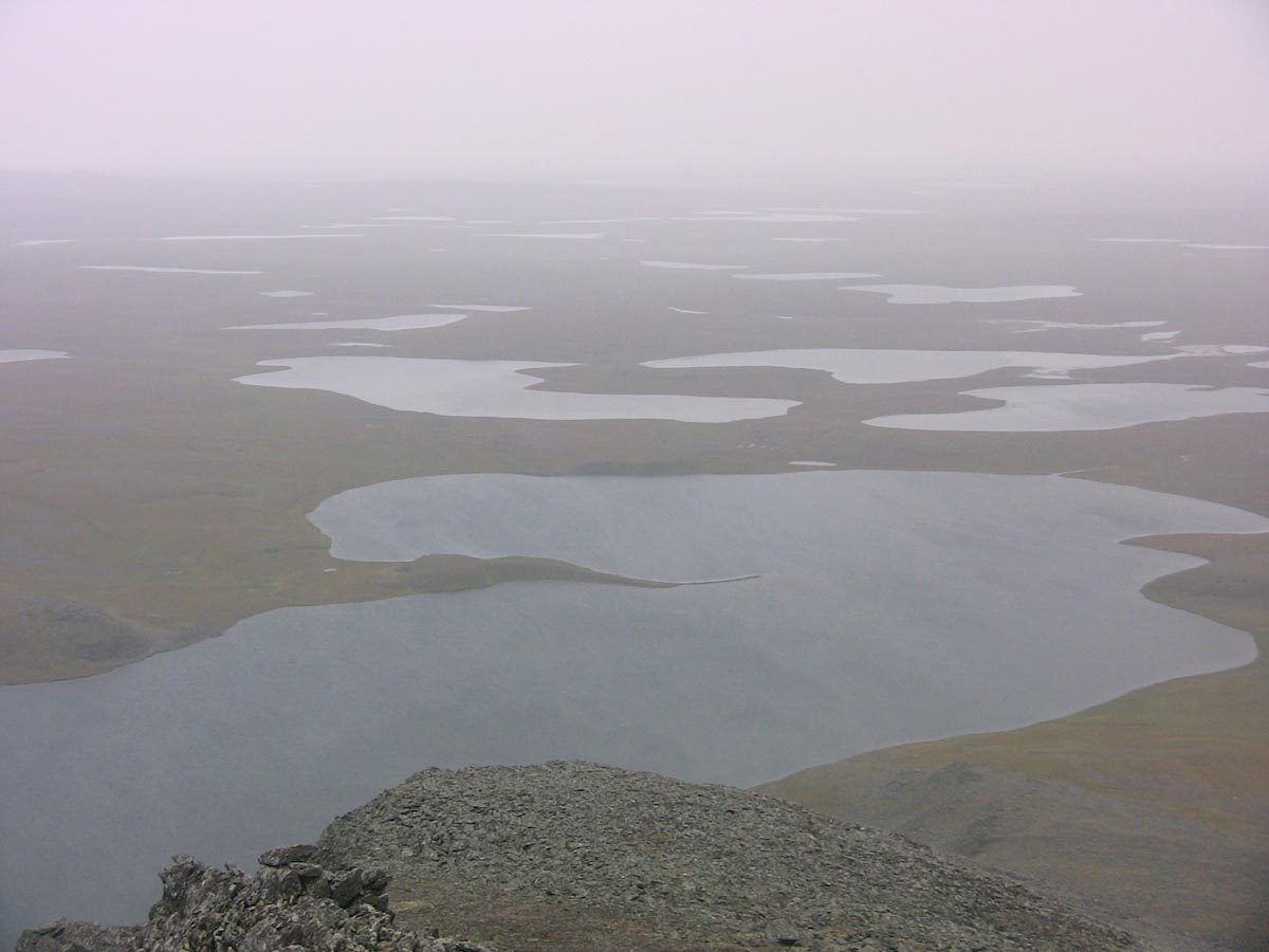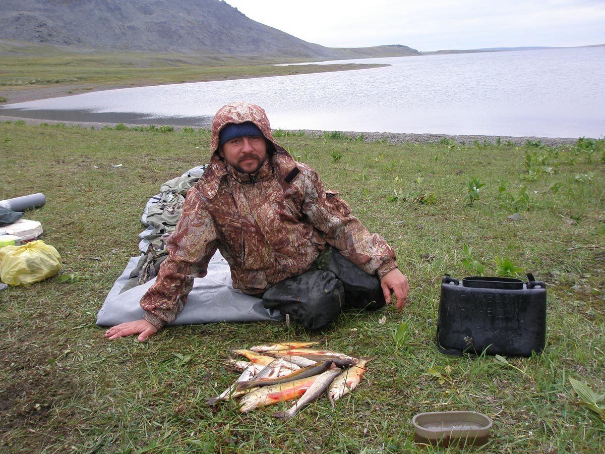 Весь день непогода. Дров нет, сушиться негде. В редких перерывах пробовал ловить рыбу. Нашел её по правой стороне от стоянки, где глубина. Ловится только с лодки и только когда нет дождя. Поймал килограмм 5, сплошь мелкий голец. самый крупный 600гр. (у Тани были с собой электронные весы). Икра у гольца крупная лососевая, мясо красное, как у всех лососей. Но вот беда - паразиты. Полно разных и в кишках и между ними. И плоские и круглые и колечками..... В общем солить рыбу или икру мы не рискнули, жарили и варили уху. Запас времени был, не спешим, на волок планировали 2 дня. Озеро Манисейто находится между двумя вершинами Большой и Малый Манисей. Озеро священное, как и обе вершины. Ненцы нам показали где конкретно находится святилище. Место действительно заколдованное. Еще неделю назад мы обратили внимание, что это хребет удерживает непогоду. То есть вокруг могут быть солнечные прояснения, а Манисей прямо тянет к себе дождевые тучи. Ближе к вечеру на двух квадроциклах прикатили 3 ребят и 1 девушка - боссы с Газпрома. Развлекаются рыбалкой и покатушками по тундре. Составили нам компанию на несколько часов, угостили водкой (чуток совсем). -------------------- Настоящему индейцу завсегда везде ништяк!
