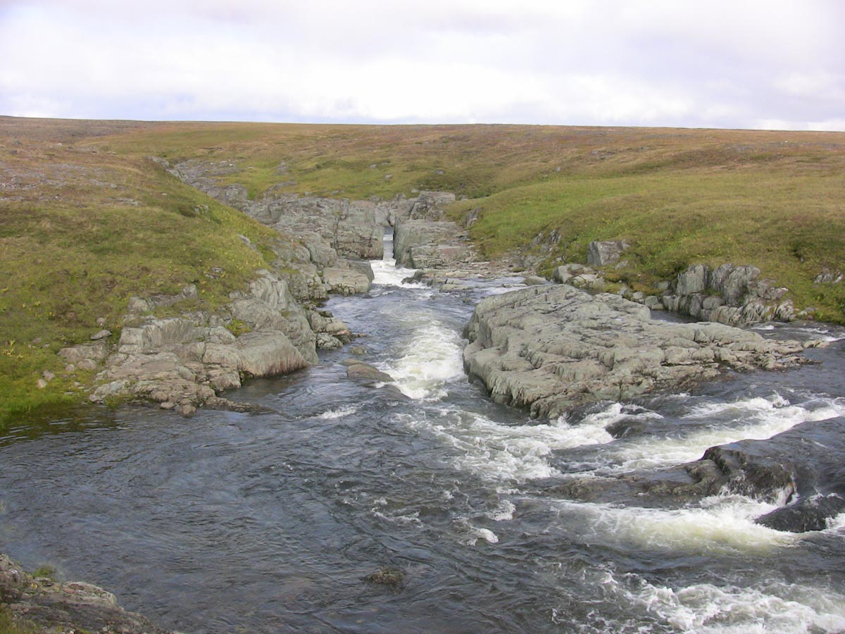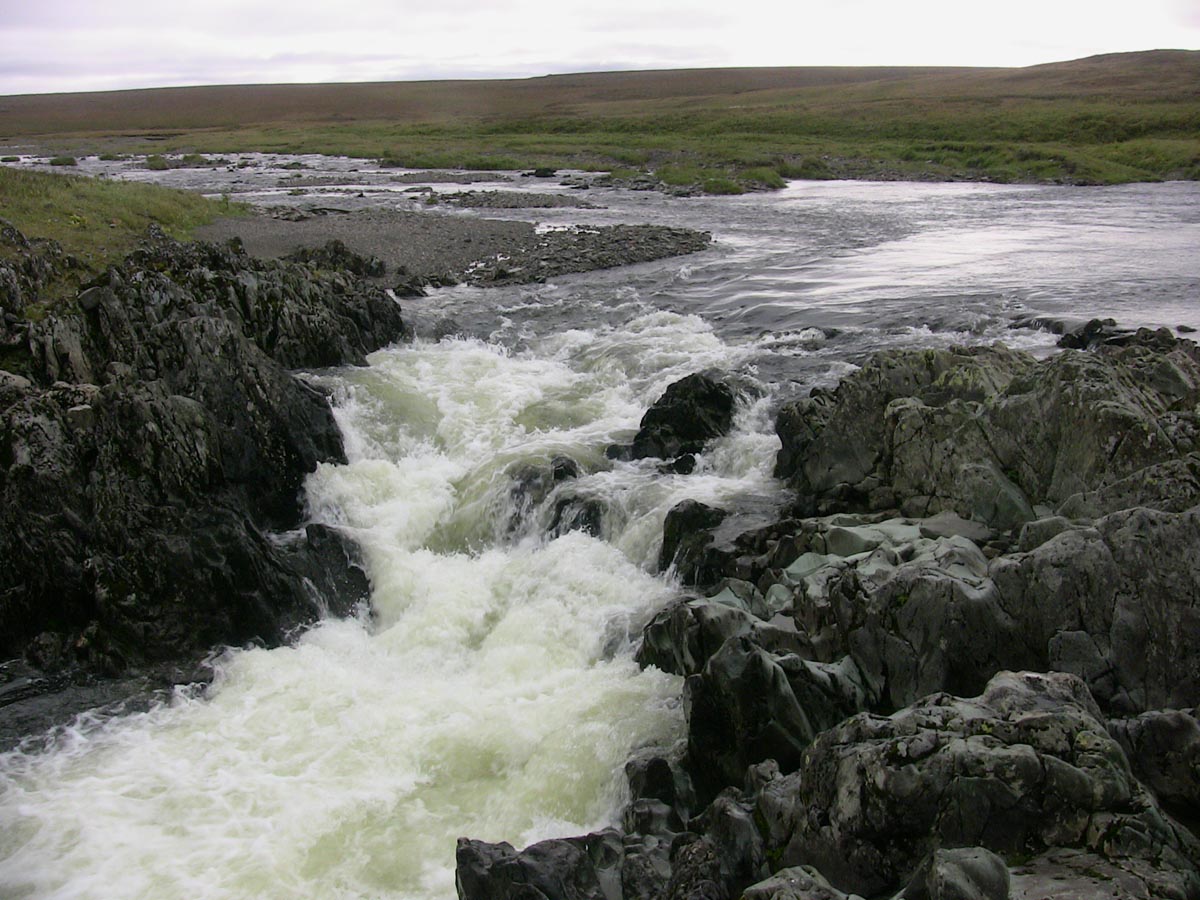 Третий день сплава по Каре. С самого начала начались каскадные пороги, примерно 2 категории. Неудобство заключалось в расположении сливов и в отсутствие достаточного места для маневра. Течение здесь сильное, против него не выгрести, только вниз, но неудобно боженька накидал кирпичей, поэтому просматривали сразу на несколько километров вперед, а это время. Но после этих заковык, река опять становится гладкой и извилистой до самого устья Нярма-Яхи. По Каре проходит граница между Республикой Коми и Ямало-Ненецким автономным округом. Река Нярма-яха относится уже к ЯНАО. В месте впадения в Кару она мелководна и со слабым течением. В самом её устье встали на обед, после которого пошли в проводку против течения, поэтому пройдено в этот день по маршруту было всего 14 км. В устье Юнь-яхи (притока Нярма-яхи) встали на ночлег, хотя было всего примерно 17 часов. Остановились тут, чтобы сделать радиалку на 5 метровый водопад указанный на карте. (его описаний и фотографий нигде до этого мы не нашли) До водопада примерно 2 км. Успели прогуляться перед тем как ужинать и спать. Водопад очень красивый, состоит из 3 ступеней, под ним расположена чаша, битком набитая хариусом, но шли сюда без удочек, ради красоты. Коля отснял видео, я через вершину перебрался на другой берег и вернулся в лагерь другим путем. Налево, направо бескрайние тундровые просторы с сопками напоминающими пирамидки, с множеством озер, но большинство из них мелкие и безрыбные. -------------------- Настоящему индейцу завсегда везде ништяк!