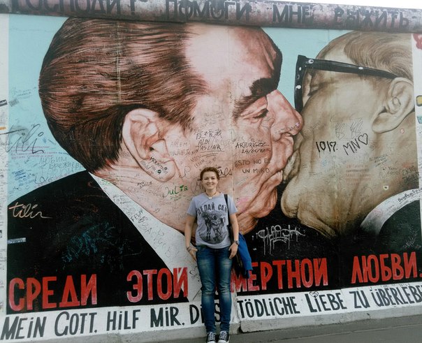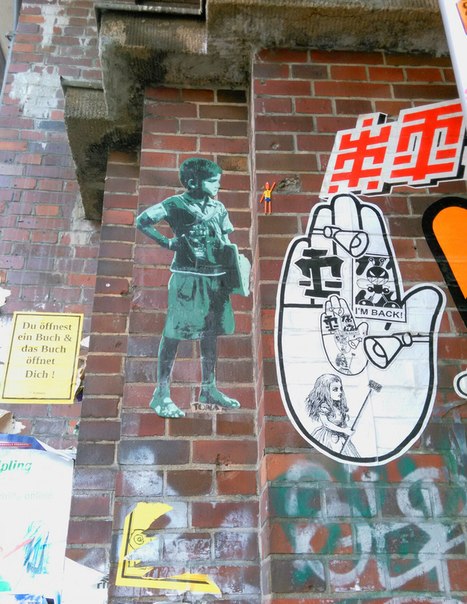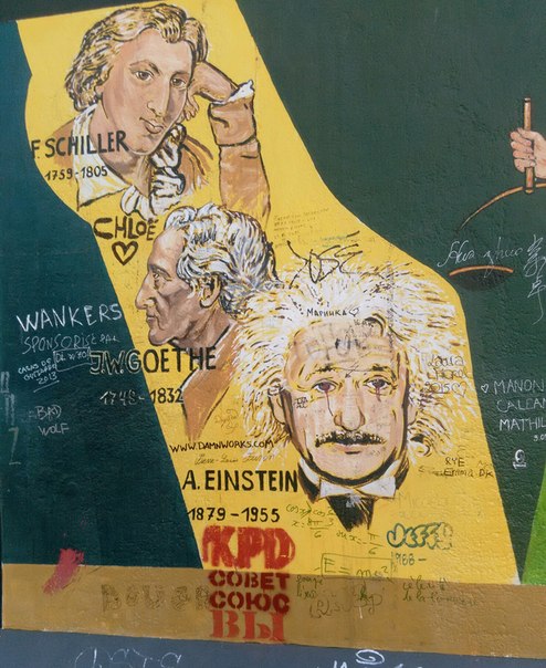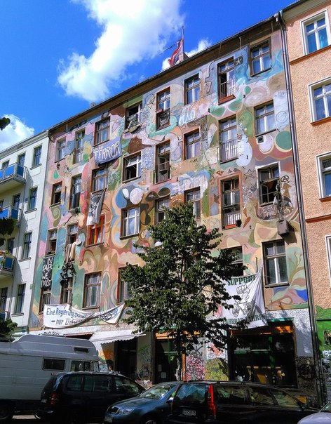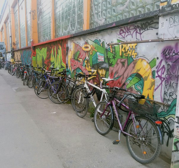 Мы въезжали в столицу Германии на фуре с сумасшедшим водителем-немцем, знающим немного итальянский, испанский, английский. Он говорил на смеси всех этих языков одновременно себе что-то под нос и сам же смеялся, а мы ни черта не понимали, но ради вежливости подхихикивали. Под конец он нам исполнил песню на русском языке из какого-то советского кинофильма. Мы спрыгнули с его фуры на берлинскую землю в то время, когда опускались сумерки. О, этот город... Московскому метро не снилась подобная гремучая смесь людей всех оттенков кожи и состояния души! Через час езды в подземке я поняла - он такой! Это тот город из моего мозга! Безудержный, нелогичный, захватывающий и пугающий! В Берлине мы опять нашли домик благодаря обожаемой Стасе ! Она договорилась с своей двоюродной сестрой Юлей, чтобы та дала нам крышу над головой. В мире столько классных людей! Человеки, спасибо что вы такие и что вы есть!!! На следующий день мы послали к черту общественный транспорт. Зачем сразу оказываться в центре? Надо проделать до него путь, увидеть то, что таится вне словосочетания "исторический центр". И дадада! Я шла и все больше очаровывалась! Переходы, мосты, секонд хенды, бомжи, дворики, супермаркеты(в них цены по-большей части ниже, чем в России), крутой засквотированный дом, множество неформально выглядящих людей, бычки, кучки мусора, чистые тротуары и все-все в граффити! Но о последнем будет отдельно. Сложно осознать, что это столица одной из самых сильных стран Евросоюза. Если я правильно думаю о Германии. Оказавшись на Александрплатц, не сразу сообразила, что это она и есть - главная площадь города. На ней стоит ратуша, высоченная телевизионная башня, костел, несколько ТЦ, строительные краны, перекопанные участки, огромный транспортный узел(трамваи, оба вида метро, автобусы), фонтаны, деревья, лавки и ещё куча всего видимо, что я не успела разглядеть. А так же присутствуют голуби, утки, неизменные бомжи, туристы, аборигены, непонятно к какому виду относящиеся латинообразные неадекватные чуваки, кричащие мне вслед "йохоу, раста!раста!". Все вышеперечисленное хорошенько смешали и высыпали на Александрплатц! И, что удивительное, абсолютно не ощущается дисгармония! Я готова была визжать! Может от того, что подобный кавардак царит во мне почти всегда, я прихожу от этого в восторг?! С прям культурными достопримечательностями у нас вышел косяк. Мы их посмотрели совсем немного. И те, я думаю, благодаря нашей хорошей Юле, которая после работы забрала нас с этой платц и повела гулять. А то мы там могли долго втыкать: Таня кормила уточек сыром, я подбухивала настоечку и глазела по сторонам) Поэтому ни в один костел мы не успели, на крышу Берлинского собора и Рейхстага не попали, памятник холокосту не посетили. Однако намотали кучу километров по улочкам, впечатлились проспектом восточного Берлина(широкий и чистый, сталинки стоят - аки Минск), оценили местный фалафель, побродили по огромному секонду, поохали над остатками стены, когда-то разделяющей город, попищали от вида барчиков на территории каких-то гаражей(там ещё арт-пространство, скалодром и невесть что. Мне кажется, в ночное время там творится такое, что Думская отдыхает, даже днём шерстили менты, заглядывая под кусты), позалипали на высотки из стекла и бетона на Потсдармплатц. Ну и ещё опоздали во второй день на метро. Из-за 