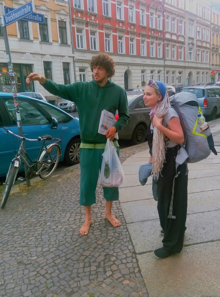 Очень захотелось рассказать вам о потрясающих людях, которые встретились на нашем пути за последние несколько дней. Только что Таня говорила о давече затесавшемся мнение в её голове, что тут загнивающий запад и люди буки. И её неимоверно удивляет и радует, что предположения оказались ошибочны. Очень много вокруг открытых чуваков! Могут просто остановиться и поболтать, улыбаются мне в ответ, может и принимают за психа, но вида не показывают. Когда мы стопили на выезде из Берлина, мимо прошла фрау в возрасте, а потом вернулась к нам и сказала, что на этом месте у нас очень хорошее будет, она чувствует! И какие-то ритуалы совершила. Я подумала, что если это злая колдунья, то я в них не верю. А если наоборот, то все ок, я согласна!