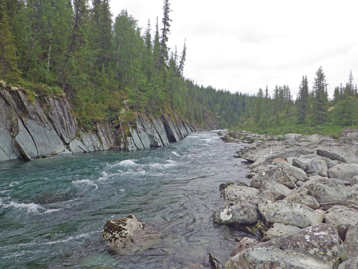 Утро. Это был бы день, как день, но было у этого дня одно немаловажное обстоятельство. Это был день моего рождения. Поэтому с утра я принимал поздравления от своих друзей и несмотря на полное отсутствие алкоголя, чувствовал себя опьяняюще счастливым. Сегодня я появился на свет, много воды утекло с той поры. Страшно было подумать сколько же лет мне исполнилось. Частенько мне приходилось встречать этот день то в дороге, то в больнице, то ещё черт знает где. Но вот сегодня он был для меня приятным. Я в маршруте, а значит счастлив на все 100! Новый, незнакомый участок Вангыра, дарил свои красоты и раскрывал не известные ещё загадки. Изба "Подвал" оказалась не далеко, возможно в пределах 5 км от нашей ночевки. Изба старая, но добротная. Видно, что поддерживается порядок. Так же как и на Лосином имеется баня и строится беседка. Своё название изба получила от скалы, которая имеет форму подвала. Скала как-бы нависает над водой, а река проходит под ней в гроте по правому берегу. Есть путевой журнал, в котором отмечаются все посетившие. Оставили свою запись и мы. Задерживаться не стали, фотосессия и опять за вёсла. -------------------- Настоящему индейцу завсегда везде ништяк!