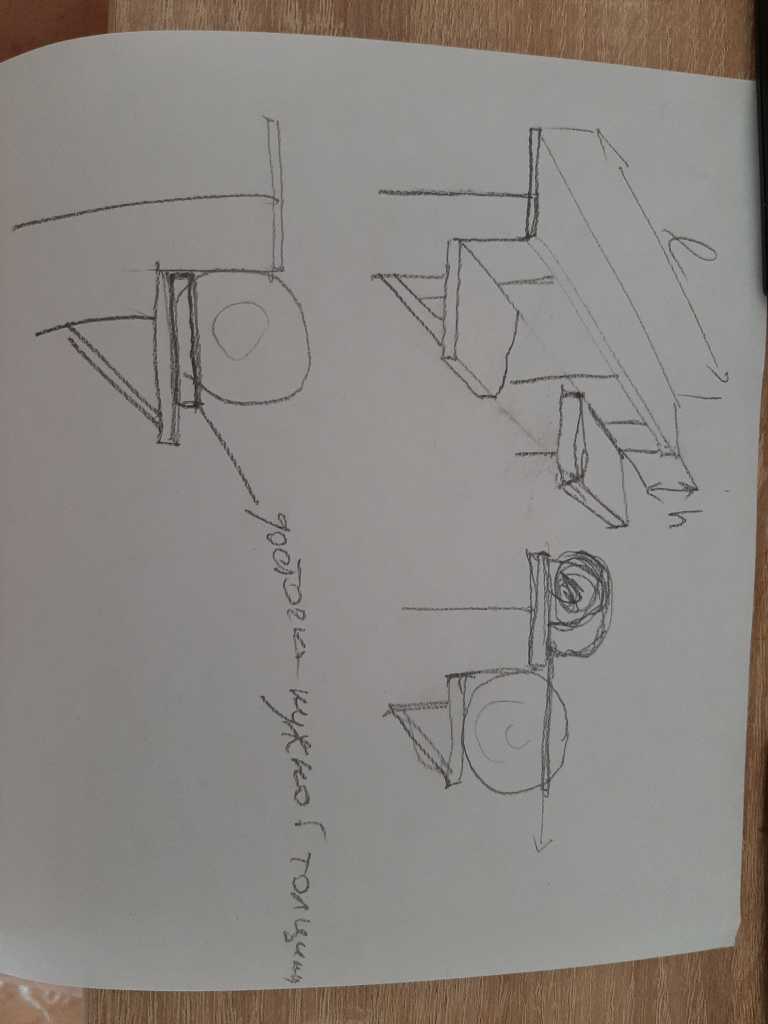 Два толстых бревна вкопаны и торцы выровнены в горизонт. Расстояние между ними под длину будущей доски. На них набита доска-направляющая. Забыл нарисовать, у направляющей есть доска уголок, как в ролике. Для того чтобы в процессе доска-направляющая не прогибалась посередине, иначе результат выйдет дугой.
