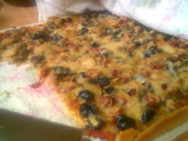пицца по хмм..)) ну просто пицца) сперва готовим тесто,ну или на крайний случай покупаем в магазе :] далее покупаюцо оливки черныйе из специй лучше всего томатную пасту , и еще такая херь типа приправы продаетсо специально для пиццы вот её надо:] так все купили-)теперь берем протвень, выкладываем туда тесто, затем томатную пасту смешиваем со специями и все ето выплевываем на тесто:]. нарезаем колбаску , болгарский перчик ,помидоры и поверх всего очищенныйе от косточек оливки-) далее посыпаем ето добро зеленью и уже заранее натертым сыром, и отправляем прямиком в духовку :] и ждем пока сготовицо. Вот собственно и фсе -) в итоге сытый и довольный желудок :] Сообщение отредактировал Nexx - 30.10.2007, 14:05 |