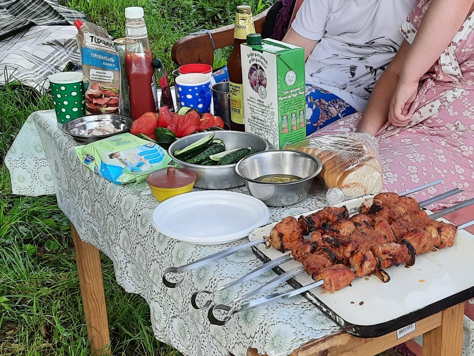 В первый день мы просто съездили уже днём в местные магазины, АТБ...Сильпо. Хотел обменять денег в банке, но там оказался слишком заниженный курс. Даже в соседнем городе за 30 км, узнали что курс на много выгоднее. Если не ошибаюсь то по месту за 1000 р. давали 362 гривны. А в соседнем городе уже 374. Решил занять у отца налички. (Для справки, в 2019 году курс обмена был на много выгоднее , примерно 1000=425 гривен. Но уже после лета 2019 года, в течение последних 2-лет он постепенно стабильно снижается и снижается..........Рубль к гривне падает, и не временно, а уже два года). Менять в Украине деньги выгоднее всего и не в банках, и не у менял. А в частном обменном пункте, который работает сетью по всей стране, Absolute Finance.....у них минимальнейшая маржа. Но он есть только в крупных городах и на всех курортах. Работает в Украине и Сбербанк, но он даёт очень не выгодный курс, если ты нашел в самом выгодном месте например 374, то в Сбербанке курс может быть равен 340. А государственный Ощадбанк даёт максимально низкий курс, примерно 1000=250 гривен. Более менее из них даёт курс нормальный это ПриватБанк. Но в банках менять не стоит, как я уже вышел писал. Купил пива. К примеру Черниговское светлое 1 литр стоит 18 гривен, это примерно 49 рублей. Купили мяса к шашлыку, шея свиная. Не помню цены. И много чего ещё. Съездили на речку покупаться...Десна. На этом день прошёл. На следующий день с утра поехали в соседний город Шостка (30 км), на рынок скупиться, денег поменять и бензина заправить. Заправки там где живет отец есть, но они не самые качественные. Находясь там, я всегда заправляюсь только в заправках WOG, у них бензин качественный. Ближайшая нужная мне заправка WOG, была только в Шостке. Бензин 95 Мустанг, на заправке WOG, на тот момент продавался по цене примерно 32 гривны за литр, что равняется примерно 86 рублям.....жутко дорого, но там все ездят на ГАЗу........он стоил летом около 17 гривен литр. На других заправках мелких частных можно купить 95-ый по 27 гривен. Но я там не заправляюсь. В Шостке на рынке мы купили самое главное.... черешни, малины, клубники...и кучю остальных фруктов. А ещё.....любимое украинское сало. Вечером дома замариновали мяса для шашлыка. Я делаю на томатах...сок с мякотью из перекрученных помидоров. Естественно туда множество разных специй. Лавровый лист, черный перец горошек побольше, лук, приправы для шашлыка, соль. Мясо получается невероятно сочным. На следующий день на территории возле дома, между огородом и домом мы устроили пикник. И соседей пригласили. -------------------- Пропаганда не делает из людей идиотов, она изначально на них рассчитана.