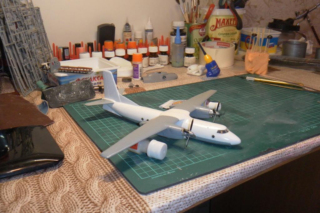 Начал Ми-8 и добиваю Ан-24. Аэрограф так и не пробовал. Причина проста не могу подобрать растворитель к краскам. Пробовал воду, водку, бензин, уайт-спирит, все сворачивается. Ацетон сильно выделяет зерно. Придется видимо заказывать краски и разбавители для моделизма, блин дешевле рыбу ловить.