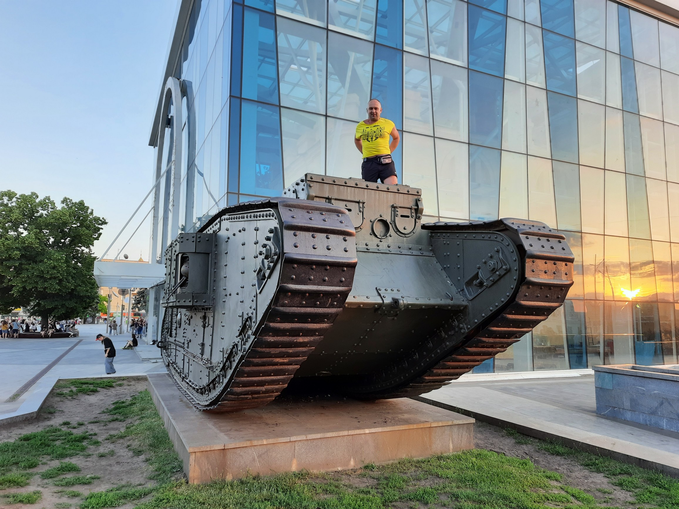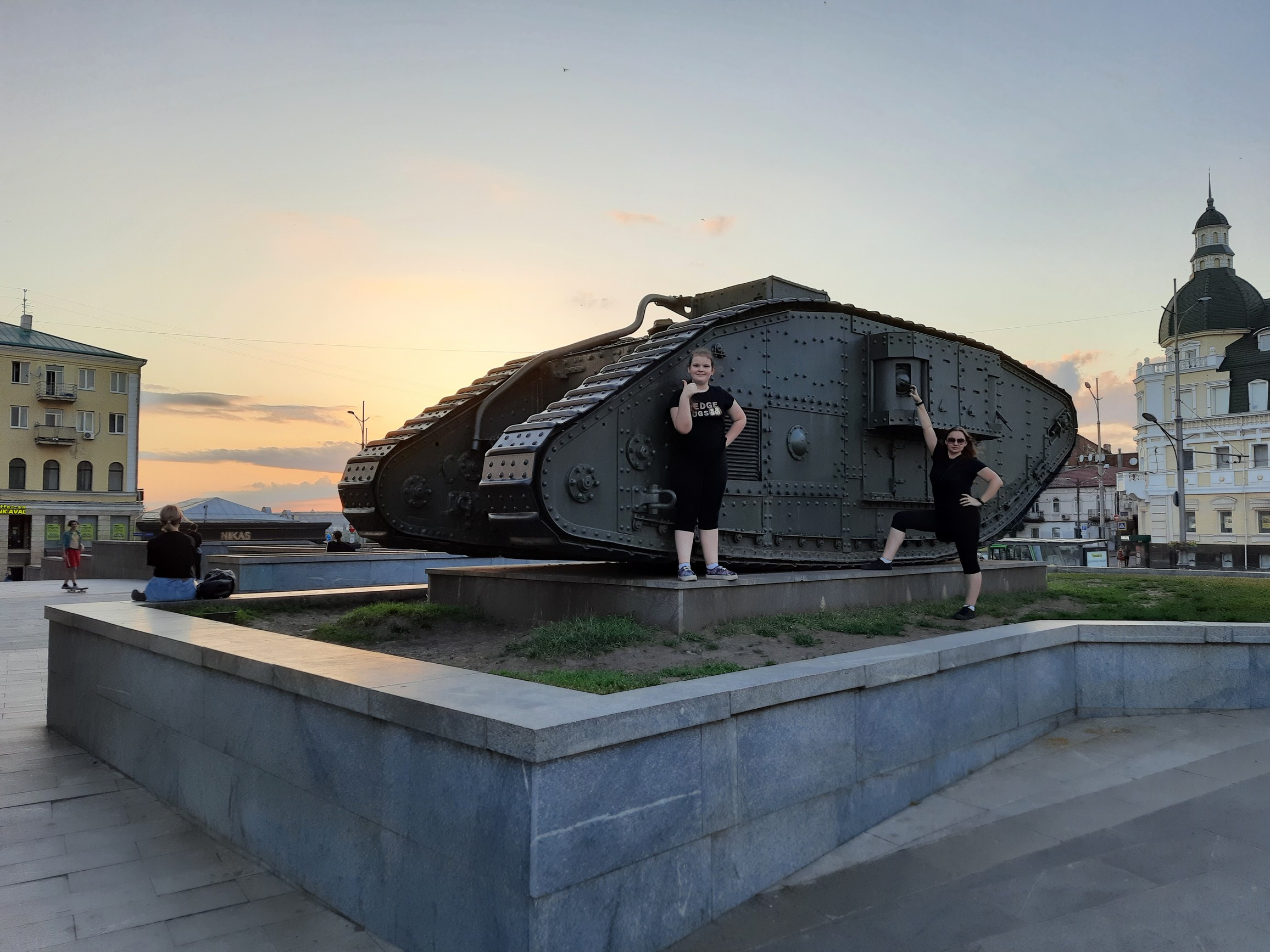 Машину отцу ещё к тому моменту дилер не отдал из ремонта, и договорились что он приедет на ней позже, как заберёт. Проехали город Сумы и в 18-50, через 400 км, мы заехали в город Харьков. Решили не проезжать его, а заехать и погулять несколько часов. Последний раз я гулял по нему в 2001 году. Когда приезжал к другу потусить в общаге. Оба мы жили в городе Светлодарск, но я учился в Донецке, а он в Харькове. Остальные разы я был в Харькове только проездом, на Ж/Д вокзале. Сначала заехали в магазин Сильпо, на улице Отакара Яроша 18Д. Зашли купили провизии на вечер, и перекус на сейчас в отделе готовой еды. Пока стояли возле машины и перекусывали, мимо нас проходило туда сюда большое количество студентов Харьковского торгово-экономического института Киевского национального торгово-экономического университета. Особенно много было иностранцев. Сразу вспомнились мои студенческие годы в ДонНТУ города Донецка и наше 12-ти этажное общежитие N8, где тоже было много иностранцев. Одолела на несколько минут грусть и тоска по былым временам. А примерно в 20-15 мы приехали в самый центр города, на площадь Конституции. Стоянки бесплатные. У исторического музея сделали несколько фотографий. Давно хотел сфотографироваться возле Британского тяжелого танка Mark V, модификации танка Mk I. Год выпуска 1918. Танк был участником гражданской войны и стоит на площади Конституции уже более 80 лет. Видел революцию, оккупацию немцами Харькова, бои за город и его освобождение ... дожил до наших дней. Танк является городским символом Белого движения. Памятник независимости "Летящая Украина". Установлен на площади Конституции в честь провозглашения независимости Украины 24 августа 1991 года. Открыт 22 августа 2012 года. На площади играл вальс и танцевали люди. Стояла приятная атмосфера спокойствия и доброты. -------------------- Пропаганда не делает из людей идиотов, она изначально на них рассчитана.