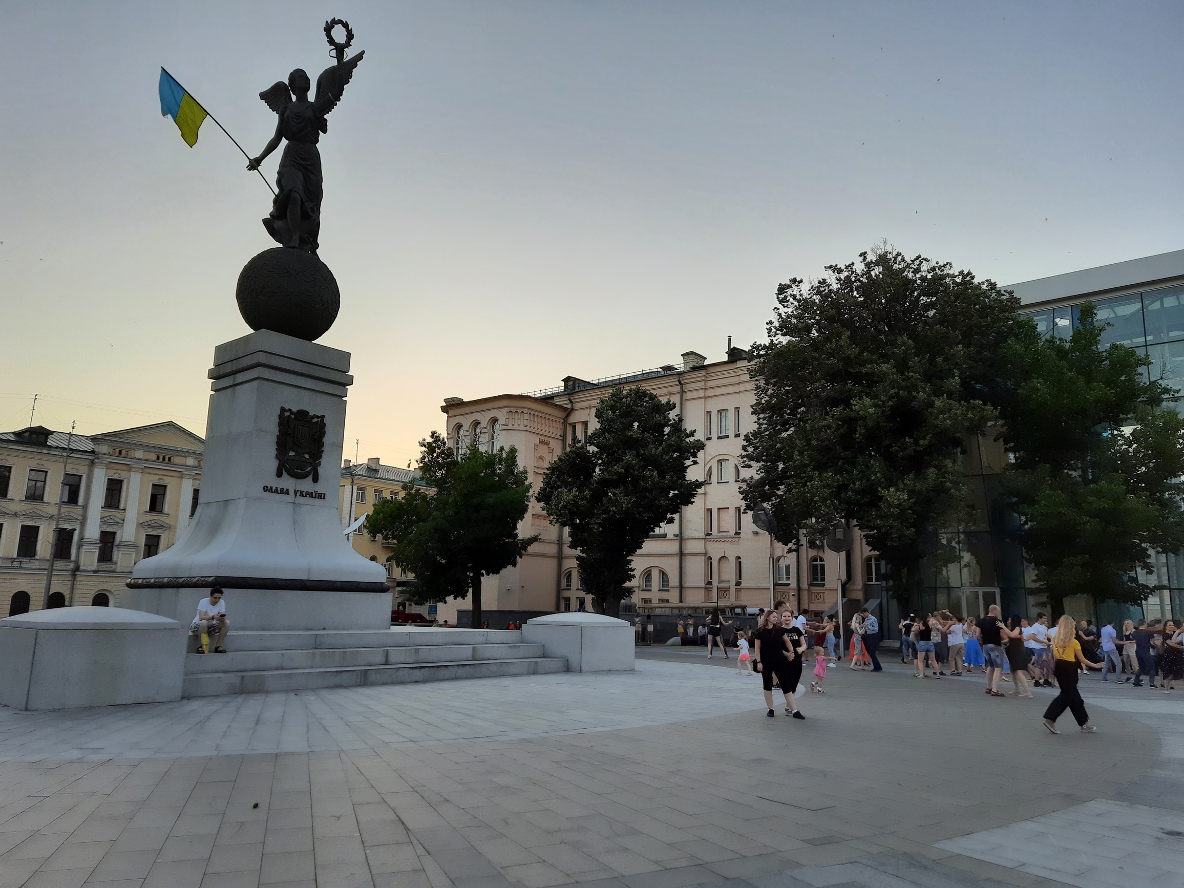 Потом пошли пешком на площадь Свободы. Расстояние примерно 2 км.