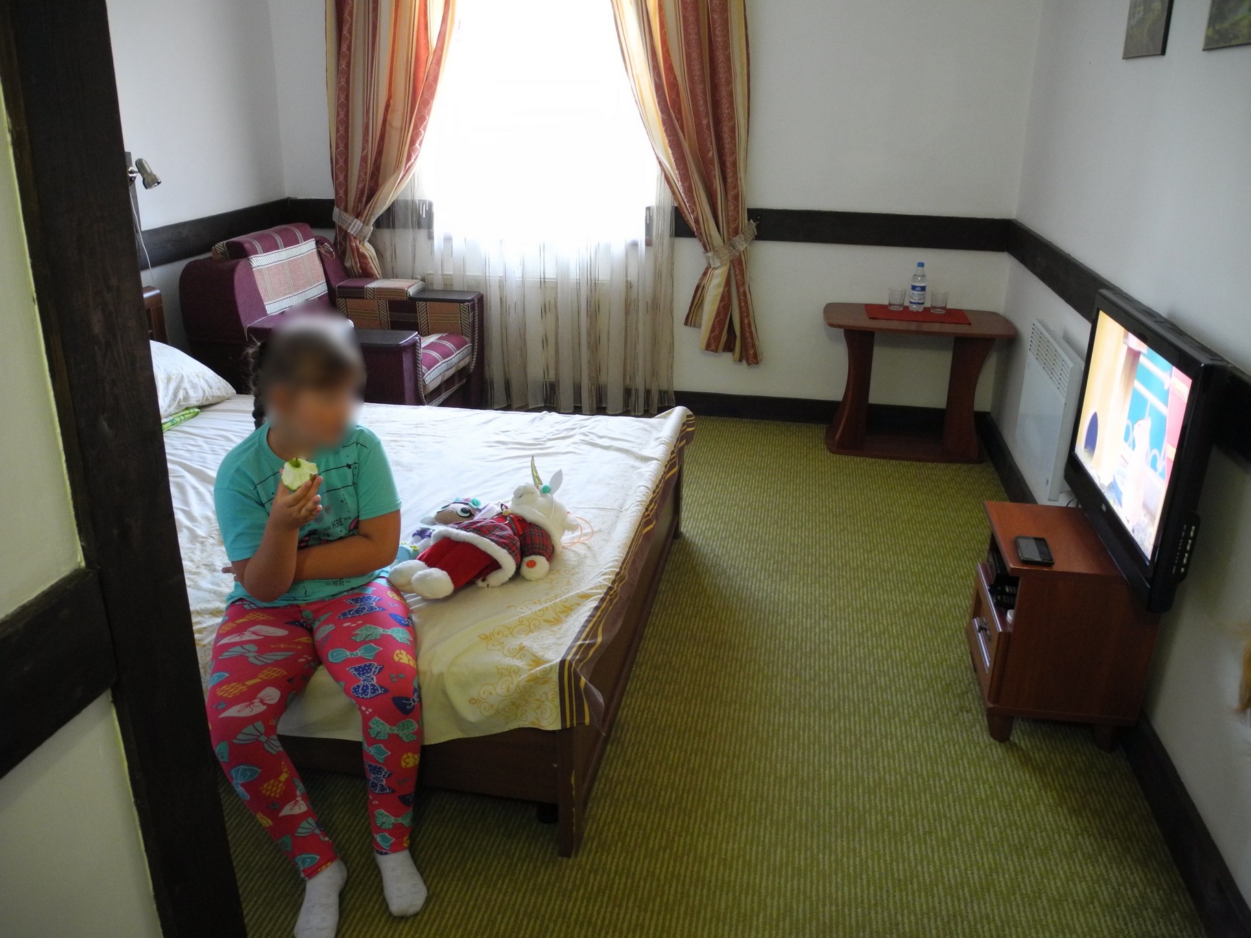 В 13-56 остановились у столовой "Фортуна", Кировская область д. Даниловка. В 15-06 отправились далее, и в 21-40 остановились в гостинице "Ладья" Костромская обл., Мантурово, Советская ул., 76. Чисто, уютно, не дорого. Но на улице комаров, больше чем в Усинске. Из машины в гостиницу чуть ли не забегали. *** 23 июня в 11-37 выехали из гостиницы. (Мы всегда долго собираемся). в 15-10 остановились у универмага "Кострома", г. Кострома, Октябрьская площадь, 1. Там на верхнем этаже есть столовая, в которой всегда останавливаемся по пути. В универмаге есть оружейный магазин. Куда я зашел и купил арбалет, стрелы, и запасную тетиву. Покупку в упаковке положил на заднюю полку в автомобиле. В 21-04 мы остановились на 166 километре трассы М7, Владимирская обл, у деревни Колокша. В кафе "Вкус мира". Кухня просто отменная, и каждый год при остановке у них, заказываю по две порции супа-харчо. На столько острого и вкусного супа как у них, я ещё нигде не пробовал. Да и отзывы в интернете о данном кафе только положительные. Все стены в кафе увешаны фотографиями знаменитостей сделанные в данном кафе, и их автографы на самих фото. (актеры, музыканты, спортсмены, политики) В прошлые разы, мы в этом кафе тоже останавливались, но ранее я не сильно задумывался что 2 и 3 этажи у данного кафе это ещё и гостиница. Возможно потому что ранее мы его проезжали всегда днём, а на этот раз уже поздно вечером. Решили а чего бы не остановиться на ночевку здесь. Хотя я планировал проехать дальше, километров на 100, в сторону Москвы. Поселились за 2000 р. на третьем этаже. Собрал арбалет и вышел на улицу его испытать, ушел в сторону заброшенных сараев. Потерял одну стрелу. Номер большой. Но когда легли спать, сильно пожалели что там остановились. Оказалось что в номере очень шумно, от проезжающих по трассе машин, особенно грузовых. Это вид из окна, с видом прямо на трассу и такое ощущение что над самой трассой находишься. Выспались............... не очень хорошо. Кухня отменная, а вот ночевать..........это уже кто как к шуму относится, если не мешает....то очень комфортно. -------------------- Пропаганда не делает из людей идиотов, она изначально на них рассчитана.