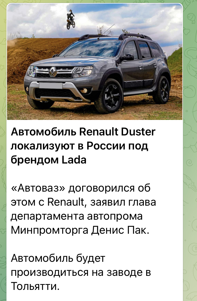 Нужно радоваться, что есть рабочие места для тольяттинцев, для российских инженеров, и Автоваз в последние годы очень вырос и будет дальше расти. И без французов он подымется! Реношные, Бошевские и т.д. комплектующие заменят нашими и часть китайскими, и это не значит что они будут хуже ! |