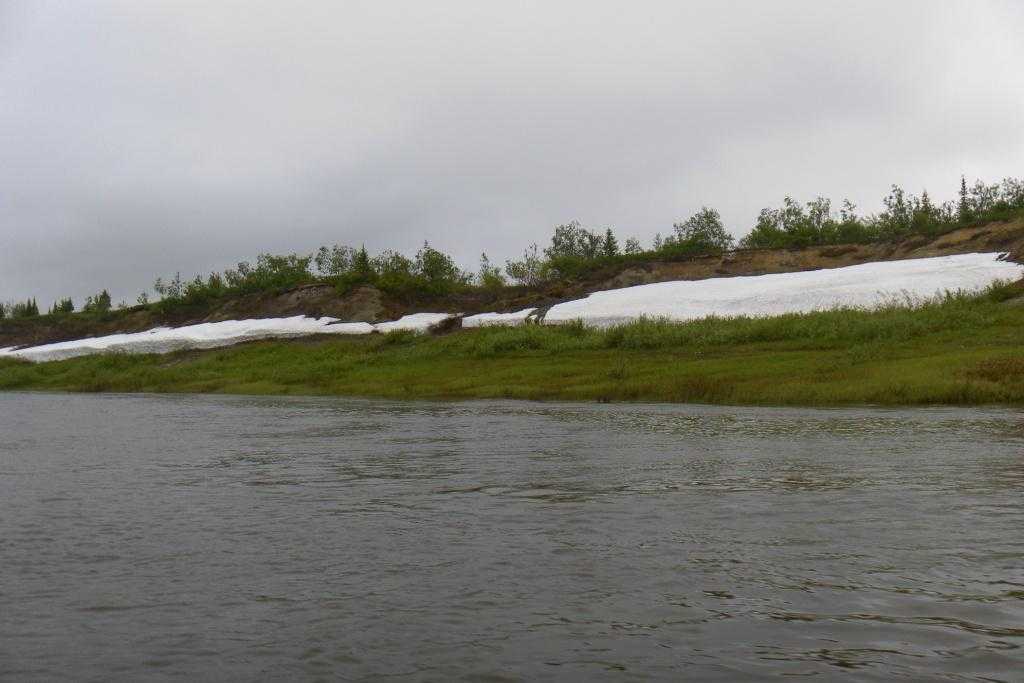 На обед стали в устье реки Фома-ю. Добротные избы, есть баня. Кладовка в которой наверное хранится все ценное под замком. Мы люди не любопытные))) У нас все есть. На газу приготовили супчик и часок после обеда подремали. Вышли и шли до ночи. Зрение у обоих стало подводить, без очков на навигаторе не разобраться. А очки в бочке с продуктами. Показалось нам, что дошли до Пымвашора, но на самом деле оказалось 4 км ниже. Вокруг голая тундра. Еще когда начались тундровые участки я сказал своему товарищу: " Нука, нука нафиг, мы там можем остаться без дров!". По берегам все чаще лежали снежники и все реже встречались деревья. Напили сушняка и уложили в лодку. -------------------- Настоящему индейцу завсегда везде ништяк!