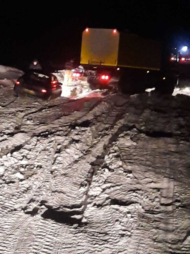 вчера вечером после морозов проехали без особых проблем, ямы, дырки, зубодробительная стиралка от Чикшино, зимник почищен, наморожен лёд