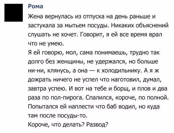 AV, а ты считаешь ее нормальной и пусть тут висит? Ну в общих чертах да. Точнее сказать, я не считаю что в ней содержится явное нарушение действующих Правил форума. Но если тебя коробит, давай обратимся к Хану, попросим скрыть в спойлер. Тут скорее вопросы личного уровня нравственности и цензуры пошлости. В некоторых кругах общения, я бы не стал такую историю рассказывать.PS Логотипу сегодня не до форума. Ну я без него не буду принимать решение по этому вопросу. Тут как то спорно. Пожалуй, уже все сказал.Eagle, почему правила строже? Кроме меня никого этот анекдот не возмутил. А я имею право высказаться, почему нет. Спойлер же есть. Как раз отличный повод воспользоваться только что введенной системой Лайк-Дизлайк.