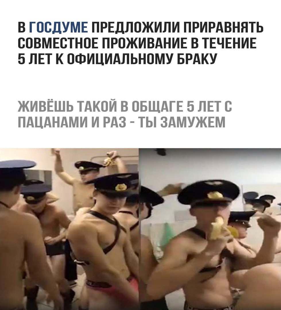 если я правильно понимаю - то эта инициатива уравняет в имущественных правах долгосожителей (сам только что придумал термин) с супругами при дележе наследства или взаимных претензий иначе "совместно нажитое в длительном сожительстве имущество" считается того, на кого записано и через суд приходится добиваться раздела имущества, как раз таки мотивируя длительным совместным ведением хозяйства Ты немного не осведомлен. Не того на кого записано, а долевая собственность. Тот кто докажет своё участие в приобретении этой собственности, тот станет её совладельцем или собственником на долю реально вложенную. К примеру мы с тобой друзья, а не супруги и вместе приобрели на двоих автомобиль. Записали на тебя, но у меня есть документальное подтверждение - денежный перевод на крупную сумму отправленный тебе в момент покупки автомобиля. Ты конечно можешь извиваться и объясняться что это возврат долга, или еще что, но тогда тебе нужно будет доказывать происхождение этого долга или объяснять на что ты потратил полученные деньги. В общем это судебные тяжбы, но вовсе не бесполезные. А вот в отношении супругов не важно кто купил 50/50 и все! Короче вся эта бодяга семью никак не укрепит, ибо нормальной семье она не нужна, а вот тем кто собрался разводиться этот статус по нраву, но не нужно забывать еще, что существуют такие вещи как брачный контракт. П.С. От себя... Пока у нас у власти чебурашка со своими недоумками у нас будут время менять туда сюда, он будет раздавать кучу поручений всем подрят, но ни с кого никогда не спрашивать, фигню всякую выдумывать никому не нужную, но заниматься чем нибудь полезным они не будут, мозгов нет. Так вот развлекают народ. -------------------- Настоящему индейцу завсегда везде ништяк!