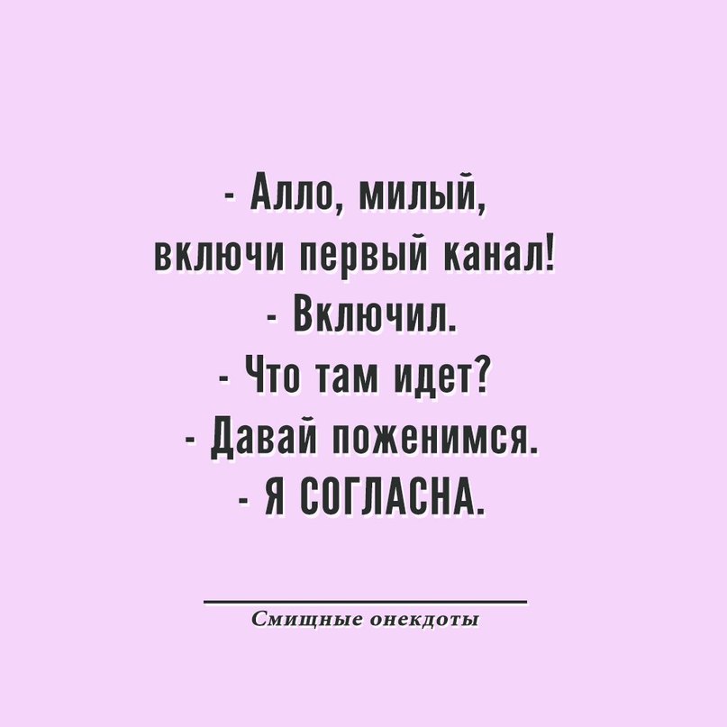 Все женщины подняли руки. Тогда их спросили: «Когда в последний раз вы сказали вашему мужу вы его любите? Некоторые женщины ответили сегодня, некоторые вчера, некоторые не помнят. Тогда женщинам сказали взять телефоны и отправить следующий текст: "Я люблю тебя, дорогой". Затем женщинам сказали обменяться телефонами и читать пришедшие текстовые сообщения: Вот некоторые ответы. 1. Кто это? 2. Ах, мать моих детей, ты больна? 3. Я люблю тебя. 4. И что теперь? Что случилось с автомобилем снова? 5. Я не понимаю, чего ты хочешь? 6. Что ты уже сделала сейчас? Я не прощаю тебя на этот раз. 7. ?!? 8. Не ходи по кругу, просто скажи мне, сколько тебе нужно? 9. Мне это снится? 10. Если ты не скажешь мне, кому это сообщение на самом деле, кое кто умрет. 11. Я просил тебя не пить больше. Я удалюсь, если ты устала от меня. 12. Чего бы ты не хотела, ответ - нет. ПС: а что ответил ваш супруг? -------------------- Мечты уносят в даль...