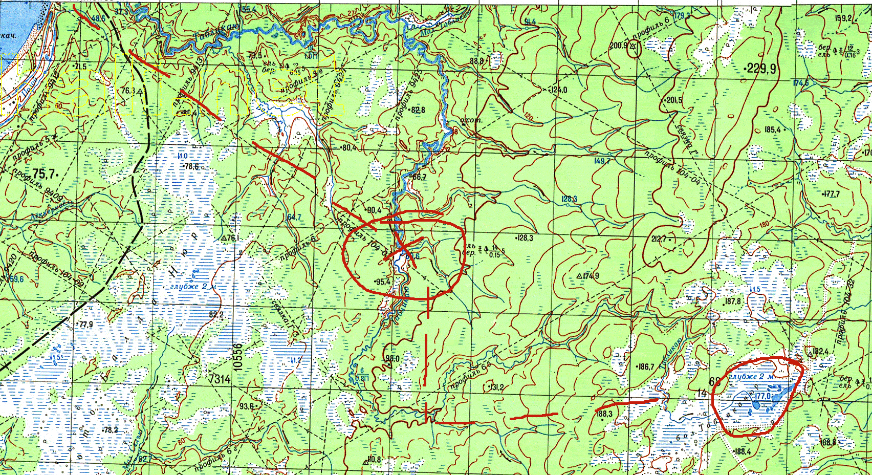 Скинул карту. Там где через лес там профиля, их видно в космоснимках.