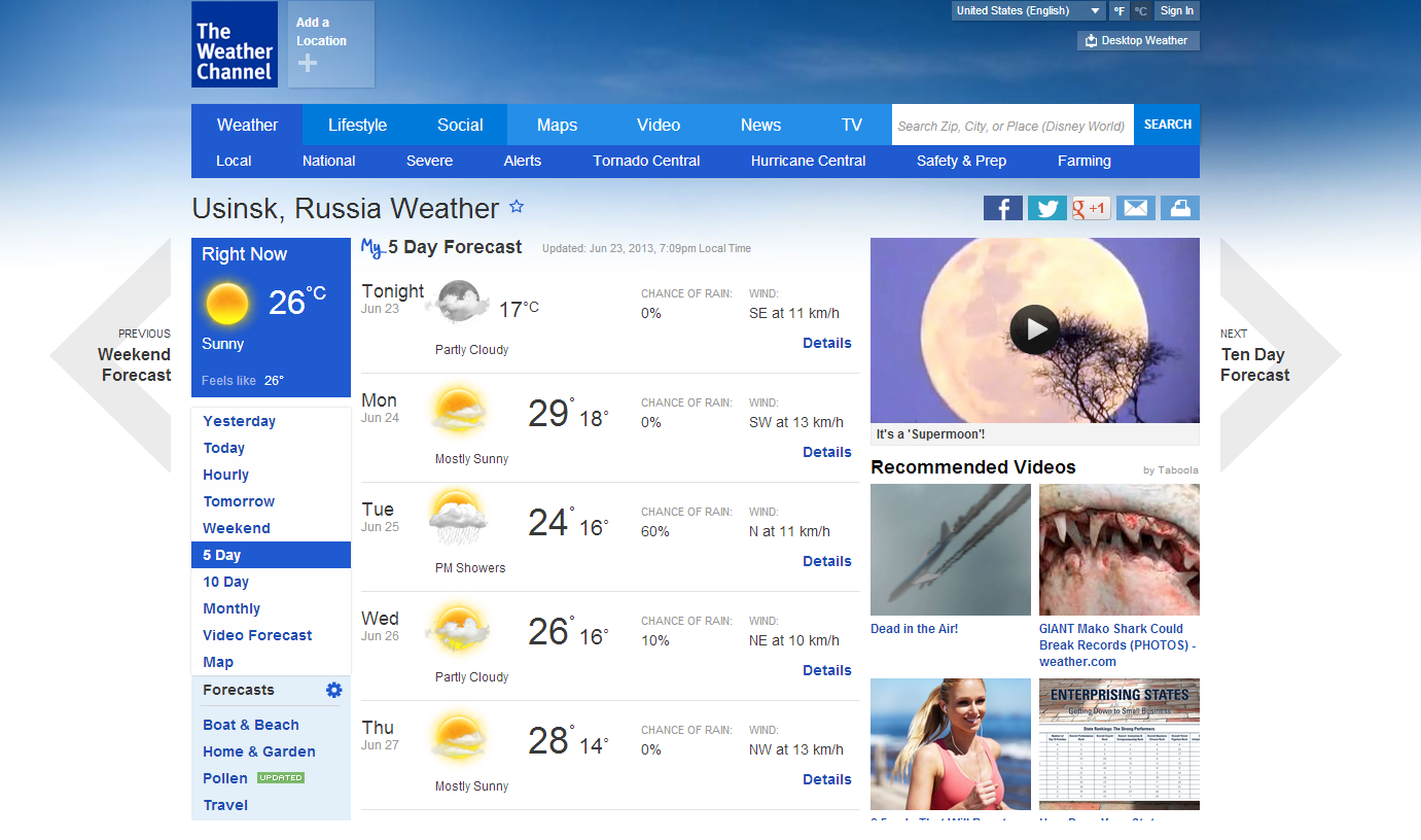 В связи с интенсивным выносом тепла из Средней Азии на территорию Коми, уже в понедельник в большинстве районов ожидается жара выше 30С. Ожидается, что аномально жаркая погода, лишь местами с короткими грозовыми дождями, в большинстве районов республики удержится до конца недели. Средняя суточная температура на 8С будет превышать климатическую норму.