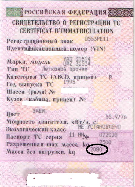 Она не влезла в свидетельство, но есть в ПТС Саня, я сегодня часа два стоял ждал, пока Вова всё внесет, он чуть не заплакал, пришлось, на внутренней части вносить))))) ttachment=25961:св1.jpg] Потрачено средств: 1) предварительная тех.эксп- 4800 р. 2) протокол тех.эксперт. - 4800 р. 3) декларация - 3500 р. 4) техосмотр - 525 р. 5) госпошлина за св-во о соответствии без.эксп.тс - 800 р. 6) госпошлина за перерегистрацию - 850 р. 7) услуги экспр.почты (2 раза в Курган) - 2000 р. Итого: 17275 р. Вписано: силовики перед и зад, 2 лебедки, защиты фонарей, окон, поворотников, лифт, экспед.багажник, доп.фары, расширит.арок, задняя лестница, ГУР, рулевой демпфер, привод спидометра 6/17, шины повыш.проходимости 38х12,5х15 ( за что больше всего переживал)))) |