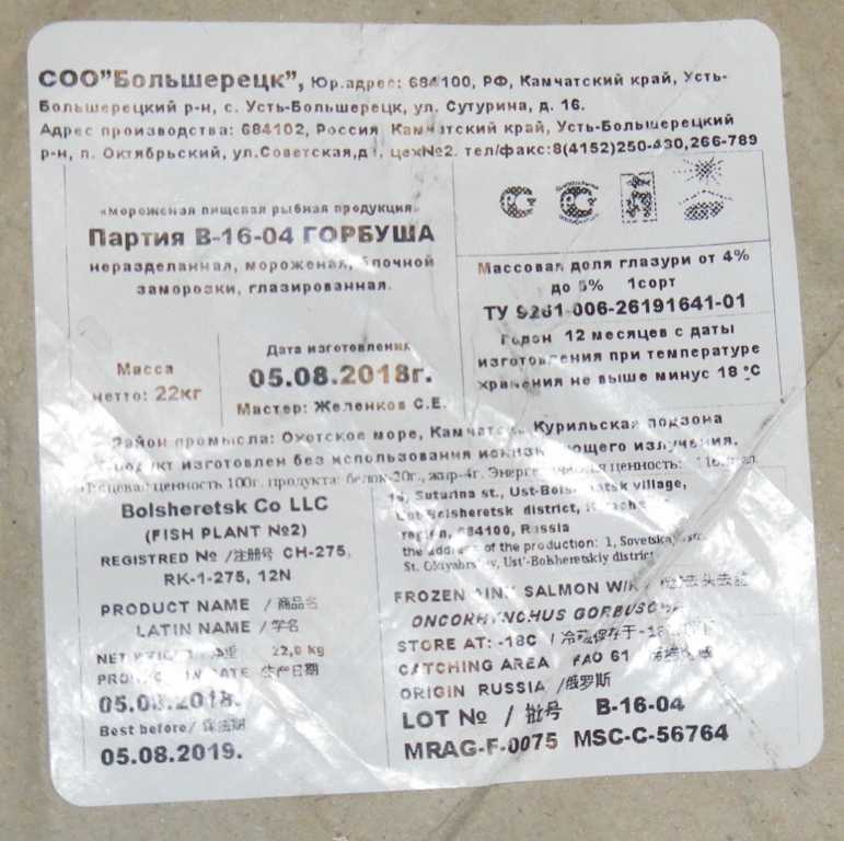 Нет не крупная. Я у Миши на базе брал плита 11 кг 7 рыбок. Тут взял плита 11 кг 10 рыбок. Из 10 только в 3 была икра. Но я сильно не переживаю, горбуша идеальная рыба и пожарить и соленую поесть и запечь и уху сварить. Головы отрезал выкинул, отходов примерно кило, икры 0,5 кило. Если сравнить цену на 0,5 икры в магазине то она себя окупила два раза. На всякий случай кидаю этикетку производителя. Я крупней не нашёл. Я и голову в уху кидаю, потом её собаке, варёные ест сырые нет. Так ещё меньше отходов =) Logotip, капец откуда рыбу доставляют. Промысловый лов горбуши преимущественно там и идёт. -------------------- |