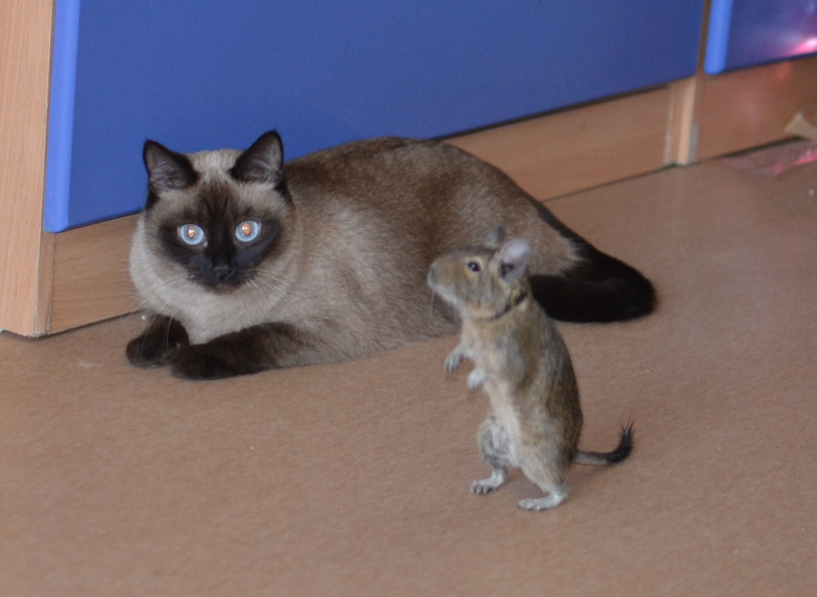 Eroha, ещё под вопросом кто кого будет есть. ))) Жаль, что животные быстро перемещаются и даже видео получается не очень хорошее. Вчера кошка ныкалась на кресле от дегу. Logotip, блин, если бы! Мою скотинку приучили к свежей свининке. Теперь приходится покупать! Корм не устраивает! |