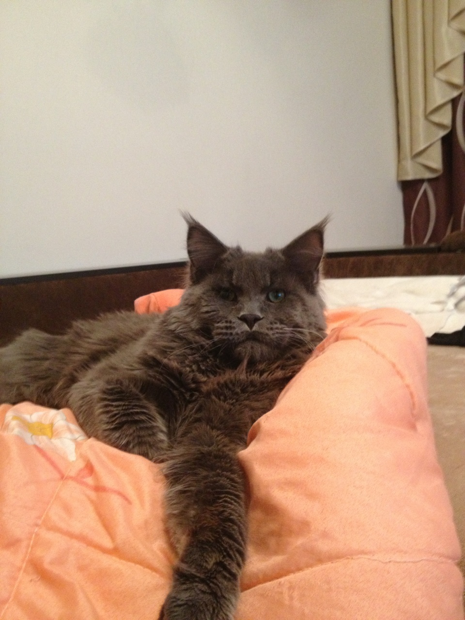 Мейн-куны здоровые, да. Для меня это минус. Попробуй такого потаскай на плече, или подержи на коленях - долго не выдержишь. Ну и морды взрослых мне не нравятся, только котятами. Эх, надеюсь, после февральского отпуска своей кошкой буду хвастаться, долгие годы. )