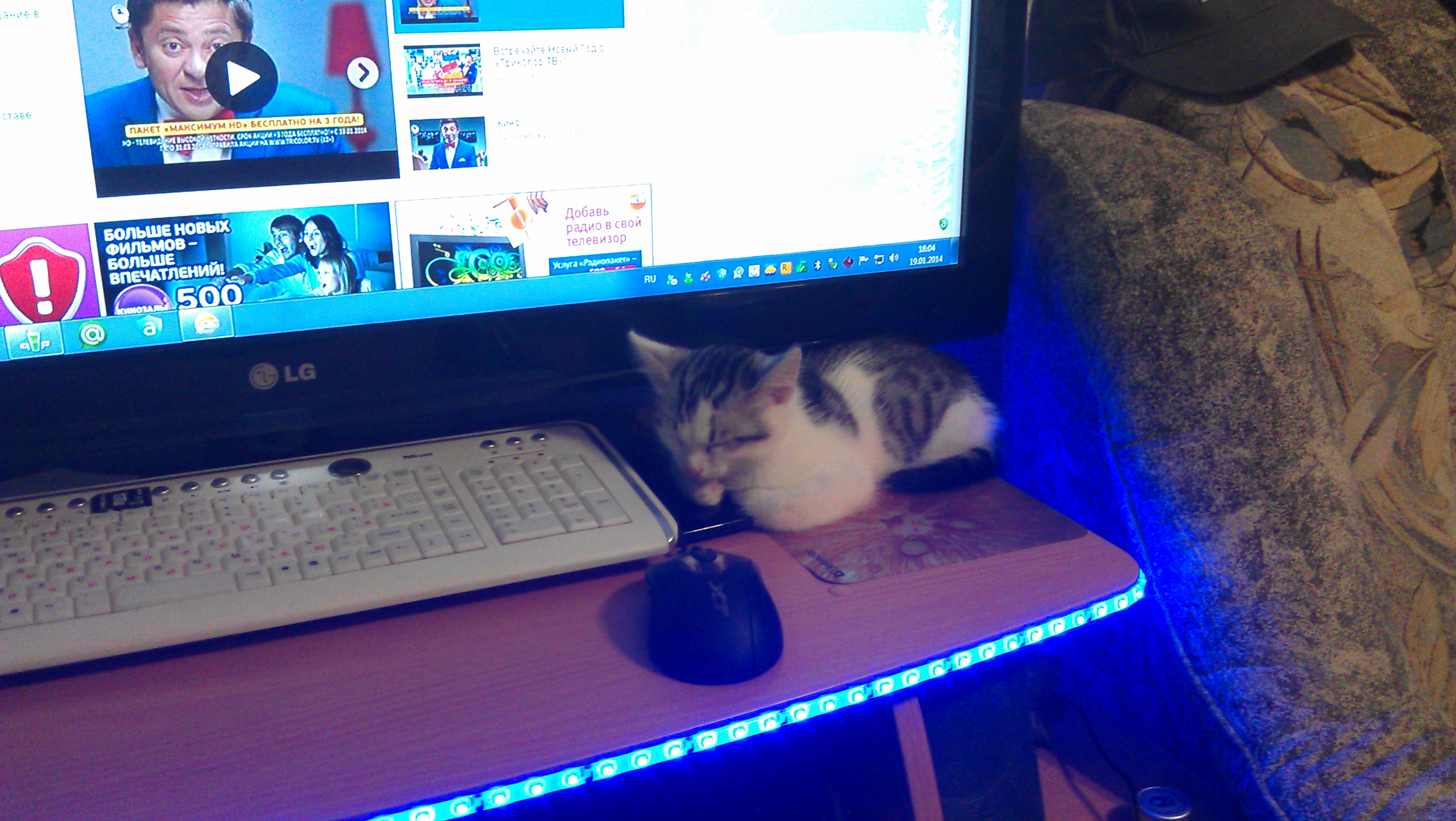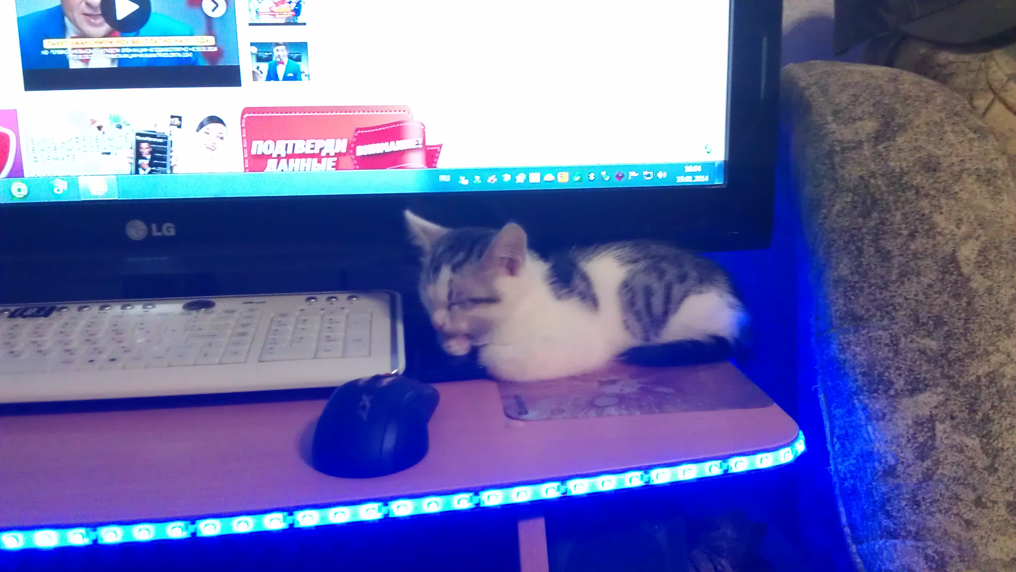 Новый катейка тут же облюбовал себе место на коврике, ток вот коврик для мыши ну не как не для кота =)