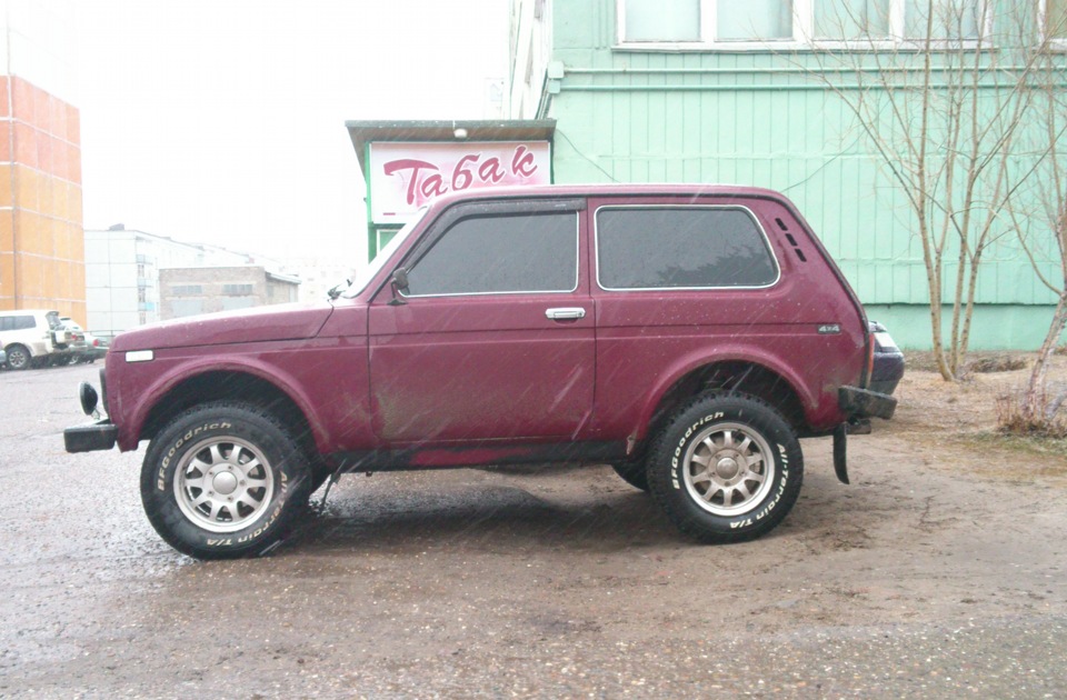 не так давно получил резину bf goodrich all terrain t a ko,брал максимальный размер для нелифтованной нивы,215\75 R15,резиной доволен во всмем за исключением цены,хотя и она оправдана,ресурс и качество на высоте,и зимой рулится и по асфальту ничего,тяжеловата только*