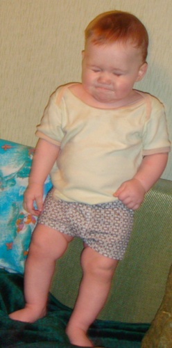 Это наши первые труселя, в то время еще не ходили, пришлось к спинке поставить для фото на память...