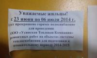 18 июня в УО и УК города поступила информация, что с 23.06.2014 по 06.07.2014 будет отключение ГВС.