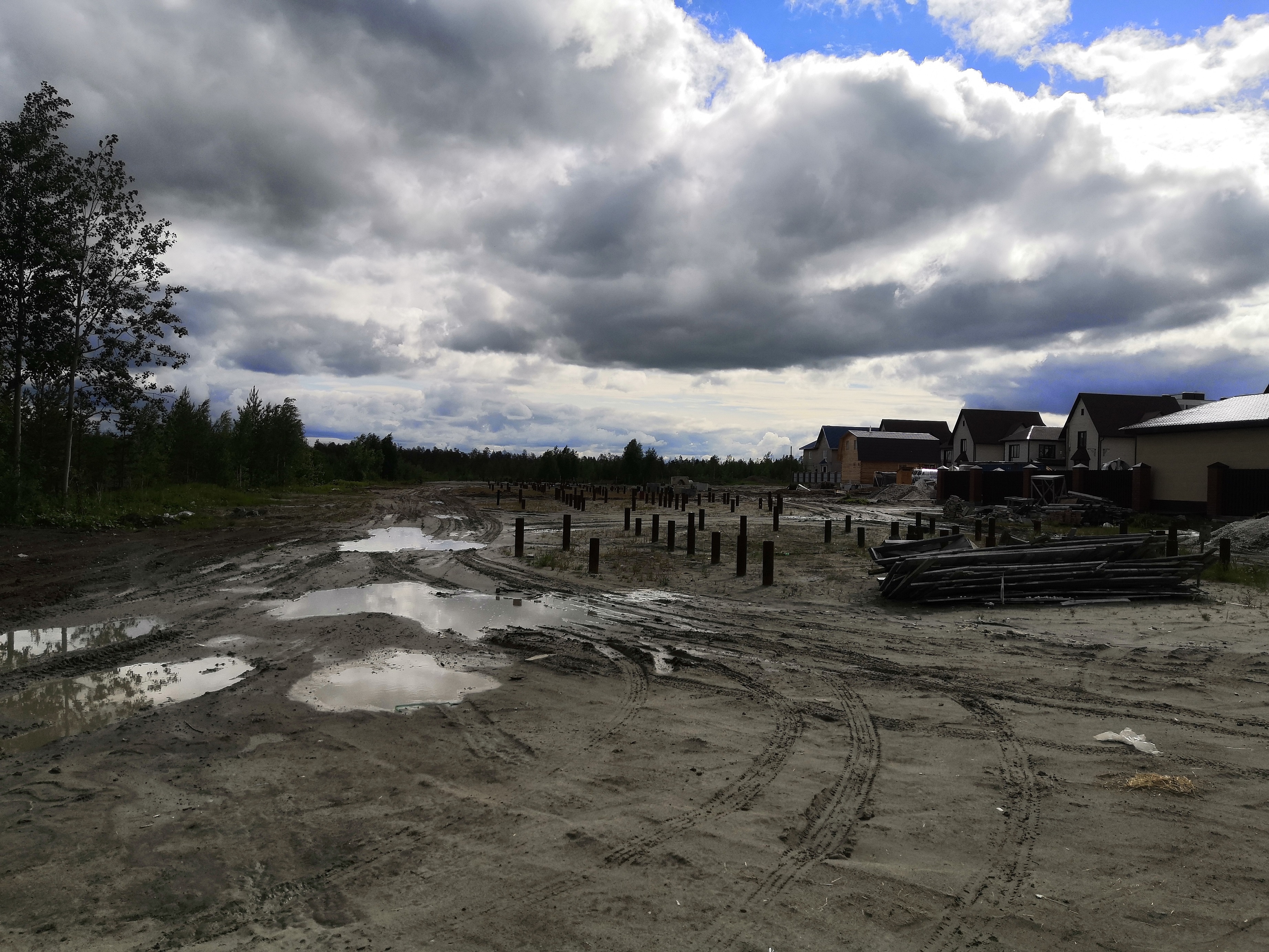 Тут выделили участки для многодетных семей, два домика стоят и ещё 4 участка мало мальски расчищены.
