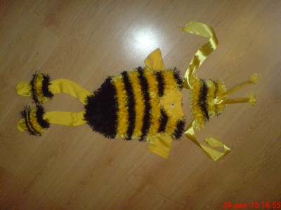 костюм шмеля, осталось только шмеленка одеть - самое трудное. если не наденет, то угробила три вечера