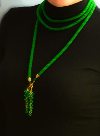 больше наверно подходит к теме хвасты)) бисер, сережки отстегиваются. PS юный фотограф в садик опаздывал, поэтому накрутила абы как.