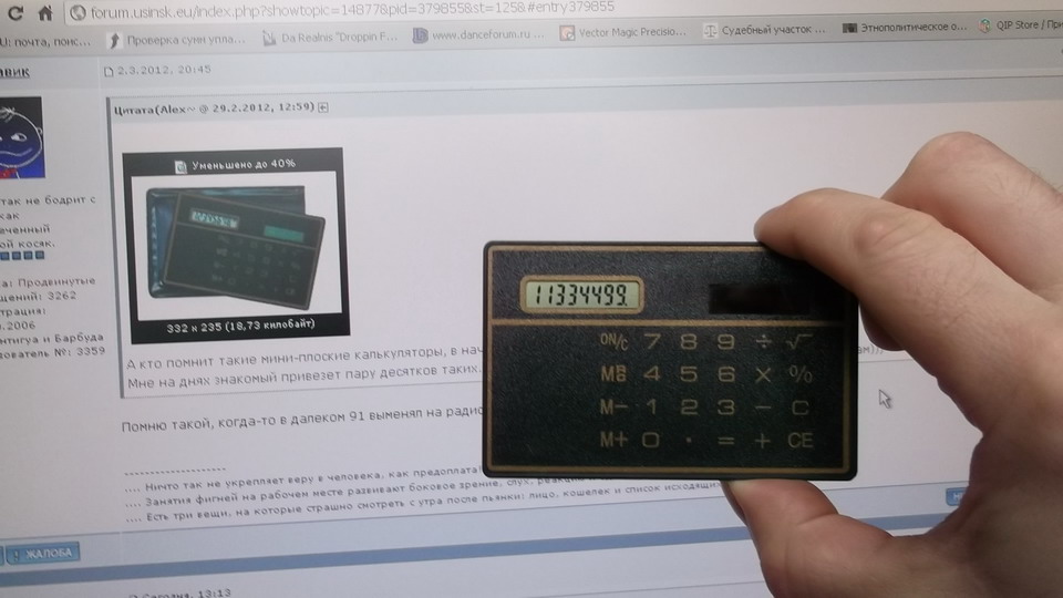 А кто помнит такие мини-плоские калькуляторы, в начале 90-х продавались? Мне на днях знакомый привезет пару десятков таких. Он где то их нашел и купил. Буду раздаривать родственникам))) -------------------- Пропаганда не делает из людей идиотов, она изначально на них рассчитана.