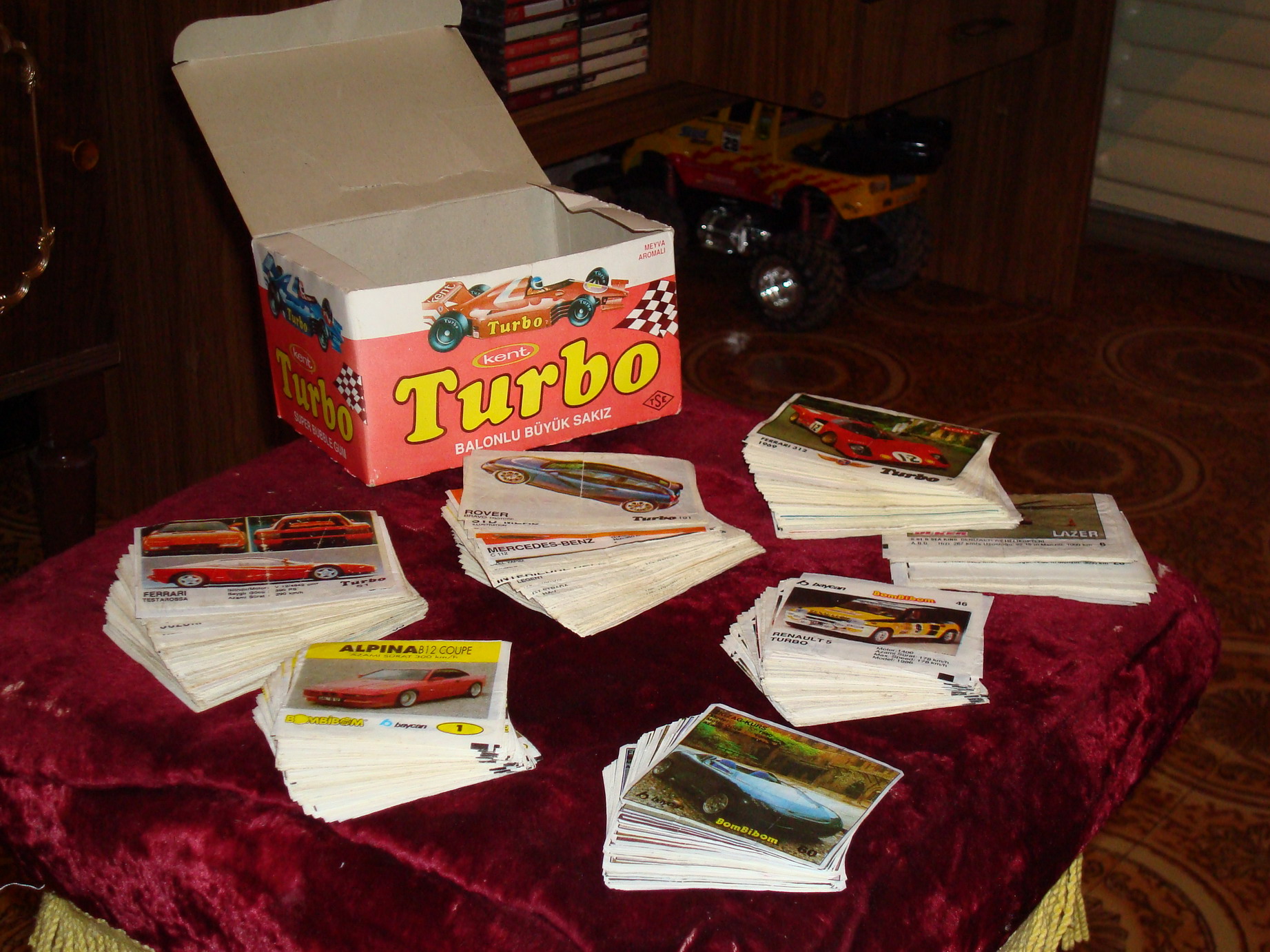 Телефон автоответчик кассетный, начала 90-х еще годов, рабочий. Значек ВЛКСМ ))) И самое популярное из увлечений 90-х, вкладыши от жевачек. Общее количество свыше 1000 разных картинок ( еще много наклеек типа BIFA и так далее). Собраны мною с 89 года по примерно 97 года. После тех лет вроде бы их уже и не продавали у нас (турбы, бомбибомы лазеры и так далее.). Сейчас к сожалению подобного не продают, а продаются одни орбиты и спёрминты, которые даже не надуваются. -------------------- Пропаганда не делает из людей идиотов, она изначально на них рассчитана.