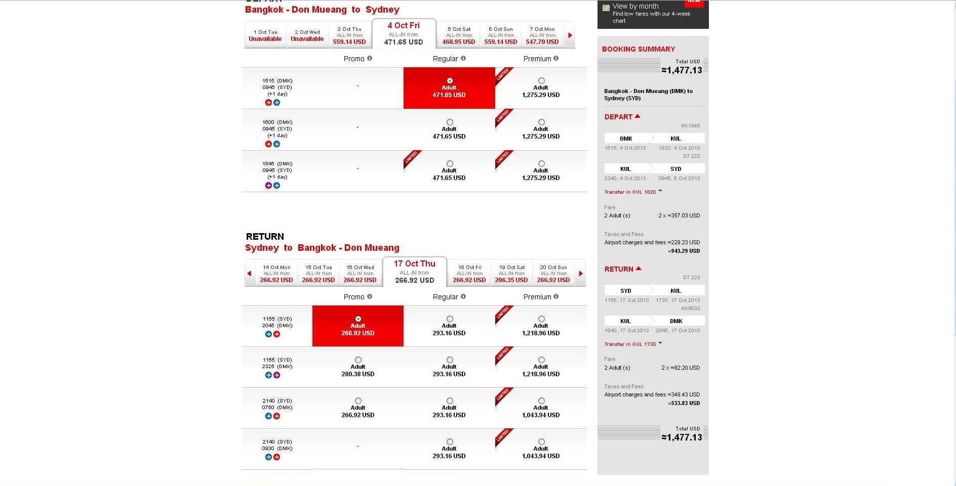 Оооо, Австралия - это очень дорого. Среди туроператоров я даже предложений не встречал. А вообще, мечта, конечно. До Тая думаю уже школьник сможет долететь. Вопросов быть не должно, очень даже бюджетно можно добраться, в этих ваших интернетах информации полно. Беглый поиск на ЭйрЭйше ( www.airasia.com ) выдал такой результат. Как видно из скриншота, тарифы бывают очень даже. Как уже здесь писал, бывают тарифы и за 1 доллар на данном чудо сайте. Ищите, ибо найдете. |