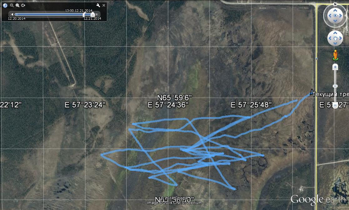 Воскресенье, 30 ноя, чудесный кайтовый день. Ветер с утра запад-юго-запад около 6 м\с, для нашего болота очень удобное направление, т.к. прижим к точке старт-финиш, а еще галсы укладываются в самые широкие места безлесия. вчера и сегодня температура не ниже -7С, замечательно комфортная температура.Свежий снег, глубина снежного слоя по колено, под снегом мокрая жижа, сверху нетолстая корка. Поскольку больших надувов пока еще нет и покров более менее однороден, скольжение очень мягкое и приятное.