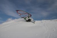 Не спиться с 4-х утра слышно дует и хорошо аж стекла на балконе подрагивают. Лежу размышляя куда пойти, ясное дело, что при такой силе ветра болото становиться сильно тесным, значит ехать до Пармы потом на Усу... Редкий день когда можно использовать Парус-Крыло, т.к. ему нужен сильный ветер (> 10м\c). Собранное крыло выглядит как-то так Крепление к крюку через вспомогательные ремни Принцип движения галсами право и в влево А хотелось бы покататься в горах по рельефу и вот так Утром (около 8 ч) ветер от 15 м\с дерганный, к 15 ч. утихающий до 6 м\с. Северо-западного направления для р. Уса от Пармы до водозабора очень удачное направление. Прокатился за Лукойловскую дачу, там крылу ветра стало не хватать, пересел на 8-ку - плохо, дергает кайт, скорость рывками большая (50км\ч) импровизированный прицеп сломался. Поменял на 4-ку, крыло загрузил на спину так и доехал до Пармы, на последние 250 метров ветра не хватало из-за высокого берега в районе остановки. Спасибо Dareck подъехал поздороваться и любезно подтянул до лесницы. Спокойно сложился и удачно загрузился в как специально меня ожидающий теплый автобус сначала до Колвы, потом обратно на Усинск. Сообщение отредактировал bazun - 17.3.2015, 9:00 -------------------- После нас сегодня чище, чем вчера. Тело должно двигать себя само.