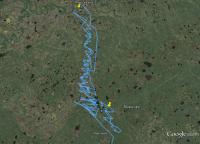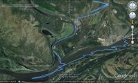 Кайтинг по рельефу реки Хановейю великолепено, ветер 5-6 в порывах 8м\с, южный. Путь 45 км, максим 42 км\ч, +3С, к 12 часам снег размягчился до неприличного приставания. Не обмотанные коленки под устали, импровизированная трапеция набила бока до состояние нетерпимости. Свернулся не удовлетворенный, но дюже довольный. Южнее зеленого круга (ниже по течению) левый берег скальная вертикальная стенка (красный многоугольник), севернее обведенного места (выше по течению) река с пологими берегами. В зеленом круге наиболее интересный рельеф для кайтинга в удовольствие (белый многоугольник). Сообщение отредактировал bazun - 22.4.2015, 9:27 -------------------- После нас сегодня чище, чем вчера. Тело должно двигать себя само.