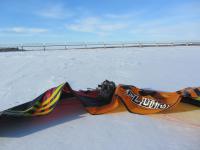 Подъем в 4:30 и в тундру на кайтайку 7-го (возврат к 7-ми) при ветре 6-7м\с, ю-ю-з отжимной, путь 17 км максимальная 28 км\ч, средняя в движении 9 км\ч, удаление от старта 2,6 км, из особенностей - в низинах ветра не хватало, так же как и для финиша (120 м дошел пешком). 8-го (возврат к 7.30) при ветре 9-11м\с, ю-з отжимной, путь 15 км, максимальная 47 км\ч, средняя в движении 11 км\ч, удаление от старта 1,8 км, из особенностей - уходя от стаскивающего напора ветра сразу слился в низину которую вчера старательно избегал, загасил кайт отстрелом первой страховки, закрепил "резвого" на плотном снегу, и добавил две утягивающие настройки после этого стало возможно подниматься на ветер. Под тенью факела попал на разряженный воздушный пояс - потерял скорость и провалился в мягкий снег; использовал остановку для добавления еще одной утяжки. Во второй низине, которая вчера была в тени факела, сегодня оказался замечательно "упругий" наст (не хотелось уходить). Вернулся на старт одним галсом, долго примерялся с посадкой, ветер сам нашел место где "притушить" кайт, пришлось согласиться. 12-го (с 8 утра до 12:45) Путь 88 км средняя 21 км\ч, макс 54 км\ч, ветер западный 8- 9 м\с (очень удачное направление). перепад высот 50 м. Тундра великолепна, кайтинг на рельефе это сплошное удовольствие. Обратную дорогу проехали за 10 часов (Усинск в 17). После Харьяги дорога теплая и скольская. В одном месте видел на обочине пятна открытой воды. В тундре была пурга, видимость только до следующей вешки, там где их не было ехали по водительскому чутью. В отличии от многих других обе вахтовки везде проехали без засады. Один из водителей на буксире вытянул из тундры УАЗ Патриот. Сообщение отредактировал bazun - 19.3.2015, 19:49 -------------------- После нас сегодня чище, чем вчера. Тело должно двигать себя само.