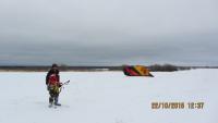Болото закрыто мягким глубоким снегом без наста... На лед р. Уса ночь добавила свежего снежного покрывала выглаживая места с застругами, присыпая ложбины вокруг торосов. Пармский спот ограничен выше по течению торосами, а ниже снегом прикрывающий мокрый лед и открытую воду. Путь по треку 40,5 км, макс скорость 38 км\ч, время в движении 2,5 ч, протяженность самого длинного галса 2 км вдоль реки , самый широкий галс поперек реки 670 м . Кайт 15 кв м, ветер ю. мягкий около 4-5 м\с длинно волновой с шагом в 15 - 20 минут, темп на потепление от -7 до -5 С. видео_галс Прим. Буксировка до 15 кг - снег рыхлый глубиной до 10 см., напор ветра только на редких приходах. -------------------- После нас сегодня чище, чем вчера. Тело должно двигать себя само.