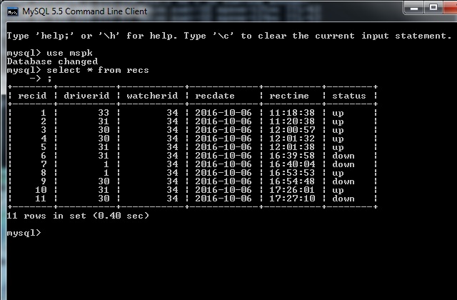 Блин ты никак не поймешь)) Такой селект я и сам могу написать)) Вот смотри, там есть второе поле driverid, с этим id каждый день пишется две записи со статусами up и down. Вот мне надо выбрать в конце дня те кто up но еще не down. а, теперь всё ясно, погоди тогда маленько. По работе ещё отвлекают, возможно после обеда выложу ) У тебя ещё driverid=30 два раза up и два раза down - это осложняет задачу, driverid=31 три раза up и пока 1 раз down, фиг свяжешь их... |