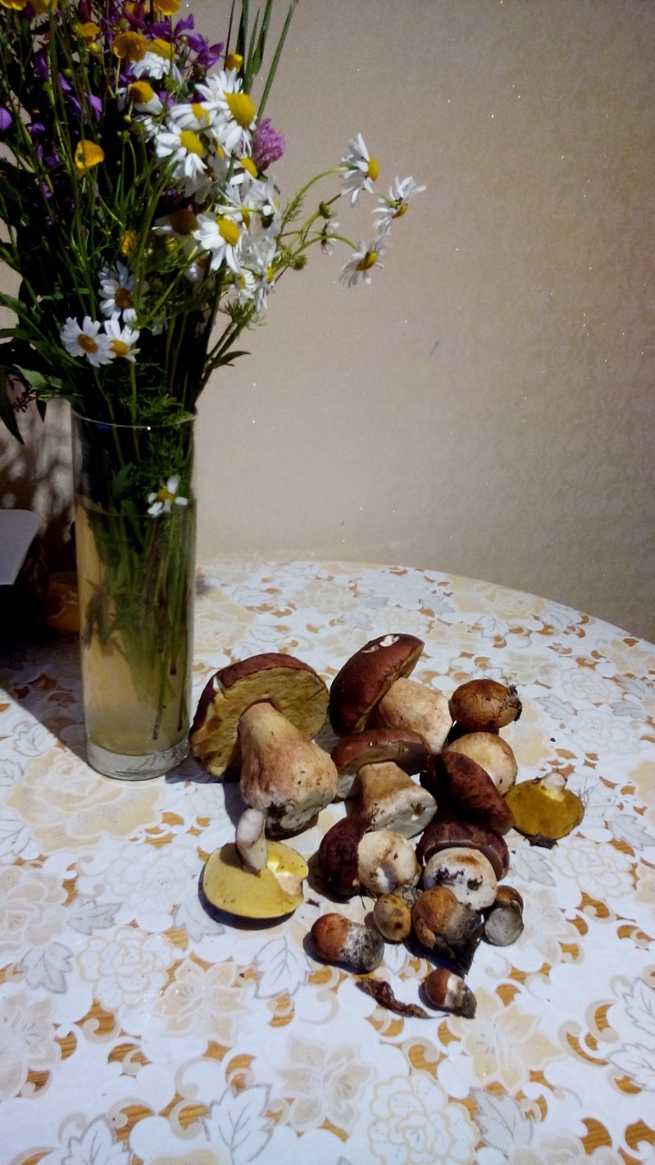 По пути на работу встретила парня, шел из леса с добычей - ведерком белых.