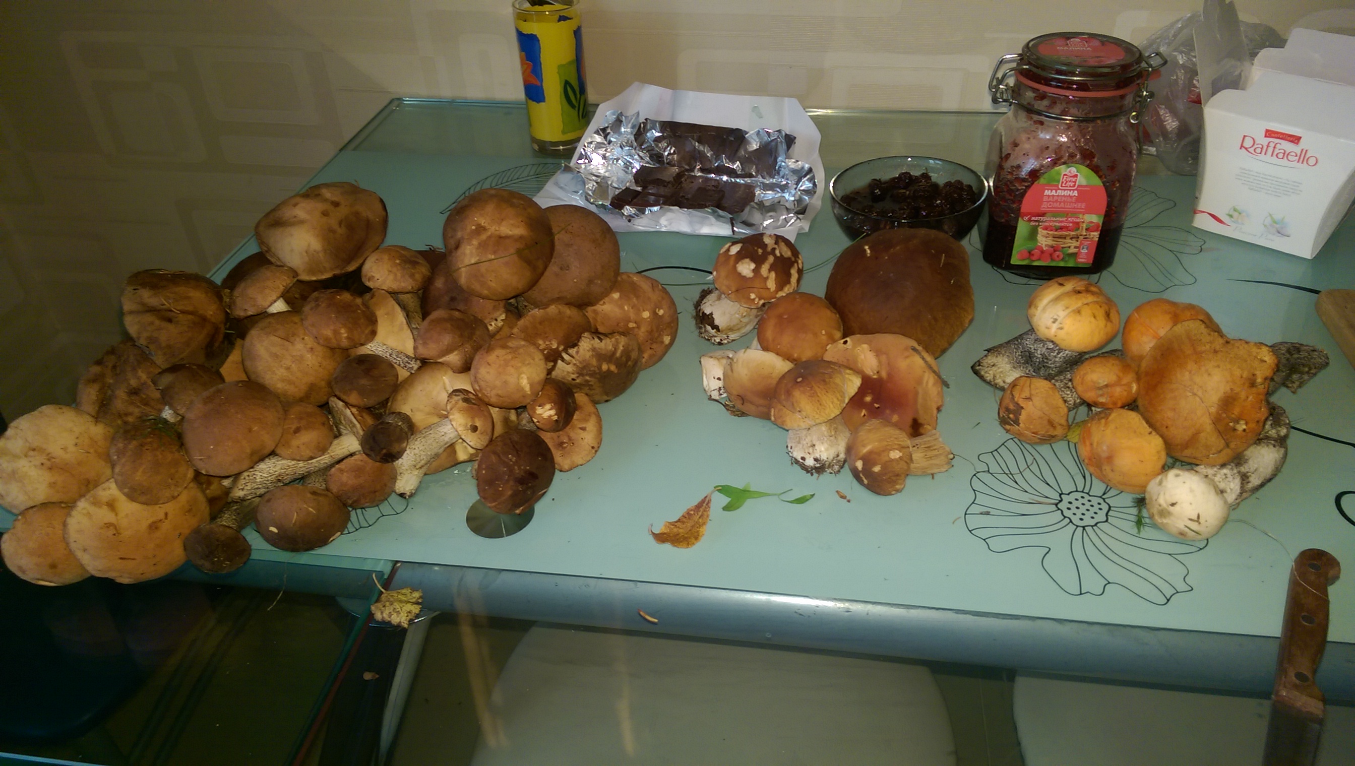 Сегодня на карьере около колвы трудно было найти места на обочине. Все тащили грибы по 2-3 ведра. Ну и я нахватил чуток.