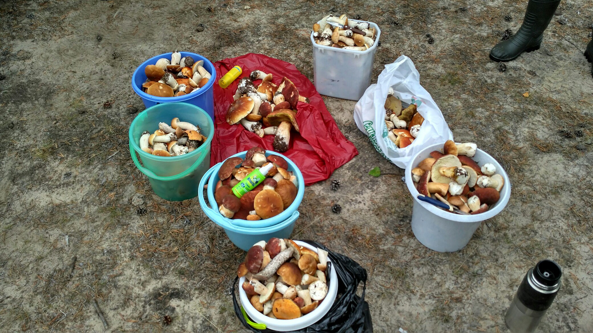 А я в сторону Мастерьеля все же заехала, итог два ведра одно белых и одно красноголовиков.