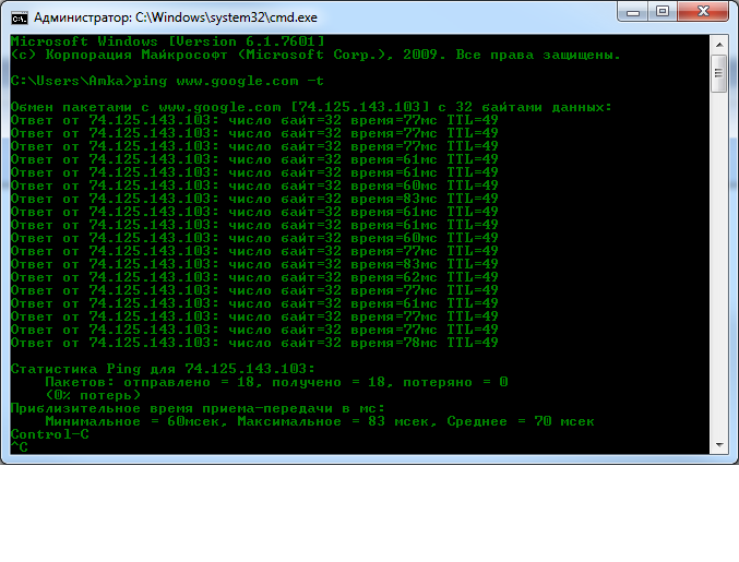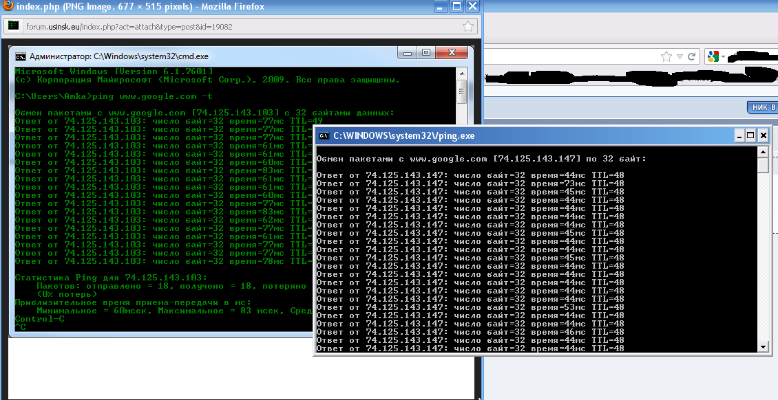 Я тут недельку как на ттк зацепился, пока радует) ADSL, 2 мегабита, радует ещё больше? >ping -t 74.125.143.103 Обмен пакетами с 74.125.143.103 по с 32 байтами данных: Ответ от 74.125.143.103: число байт=32 время=43мс TTL=48 Ответ от 74.125.143.103: число байт=32 время=44мс TTL=48 Ответ от 74.125.143.103: число байт=32 время=42мс TTL=48 Ответ от 74.125.143.103: число байт=32 время=43мс TTL=48 Ответ от 74.125.143.103: число байт=32 время=42мс TTL=48 Ответ от 74.125.143.103: число байт=32 время=42мс TTL=48 Ответ от 74.125.143.103: число байт=32 время=43мс TTL=48 Ответ от 74.125.143.103: число байт=32 время=45мс TTL=48 Ответ от 74.125.143.103: число байт=32 время=44мс TTL=48 Ответ от 74.125.143.103: число байт=32 время=42мс TTL=48 Ответ от 74.125.143.103: число байт=32 время=44мс TTL=48 Ответ от 74.125.143.103: число байт=32 время=42мс TTL=48 Ответ от 74.125.143.103: число байт=32 время=43мс TTL=48 Ответ от 74.125.143.103: число байт=32 время=42мс TTL=48 Статистика Ping для 74.125.143.103: Пакетов: отправлено = 14, получено = 14, потеряно = 0 (0% потерь) Приблизительное время приема-передачи в мс: Минимальное = 42мсек, Максимальное = 45 мсек, Среднее = 42 мсек это мой гугл.ком (хотя обычно серваки указывали на стадо кешей РТ) >ping -t 173.194.71.190 Обмен пакетами с 173.194.71.190 по с 32 байтами данных: Ответ от 173.194.71.190: число байт=32 время=43мс TTL=48 Ответ от 173.194.71.190: число байт=32 время=43мс TTL=48 Ответ от 173.194.71.190: число байт=32 время=44мс TTL=48 Ответ от 173.194.71.190: число байт=32 время=45мс TTL=48 Ответ от 173.194.71.190: число байт=32 время=44мс TTL=48 Ответ от 173.194.71.190: число байт=32 время=44мс TTL=48 Ответ от 173.194.71.190: число байт=32 время=44мс TTL=48 Ответ от 173.194.71.190: число байт=32 время=44мс TTL=48 Ответ от 173.194.71.190: число байт=32 время=44мс TTL=48 Ответ от 173.194.71.190: число байт=32 время=44мс TTL=48 Ответ от 173.194.71.190: число байт=32 время=45мс TTL=48 Ответ от 173.194.71.190: число байт=32 время=44мс TTL=48 Ответ от 173.194.71.190: число байт=32 время=44мс TTL=48 Ответ от 173.194.71.190: число байт=32 время=44мс TTL=48 Ответ от 173.194.71.190: число байт=32 время=44мс TTL=48 Ответ от 173.194.71.190: число байт=32 время=44мс TTL=48 Ответ от 173.194.71.190: число байт=32 время=44мс TTL=48 Ответ от 173.194.71.190: число байт=32 время=47мс TTL=48 Статистика Ping для 173.194.71.190: Пакетов: отправлено = 18, получено = 18, потеряно = 0 (0% потерь) Приблизительное время приема-передачи в мс: Минимальное = 43мсек, Максимальное = 47 мсек, Среднее = 44 мсек -------------------- Turn off the light, take a deep breath and relax.
